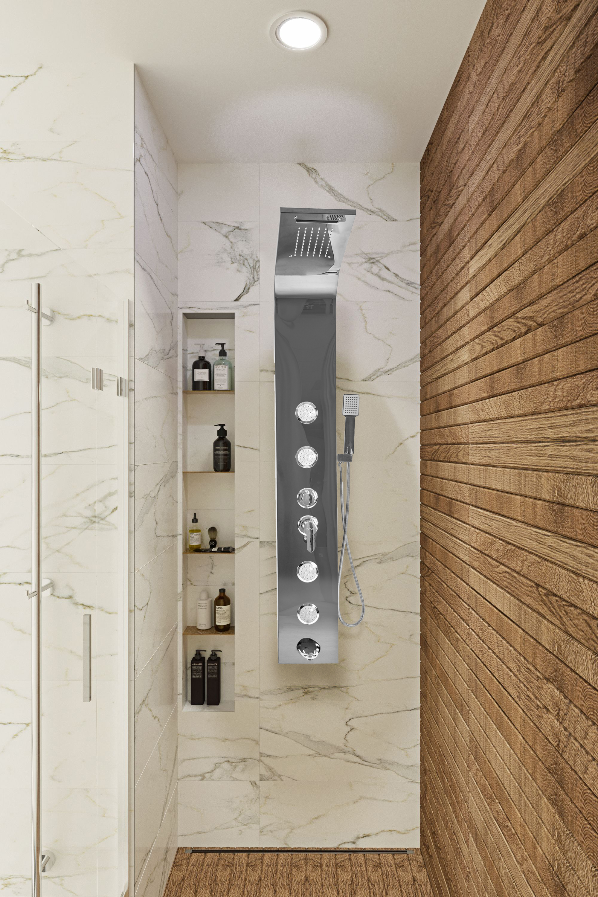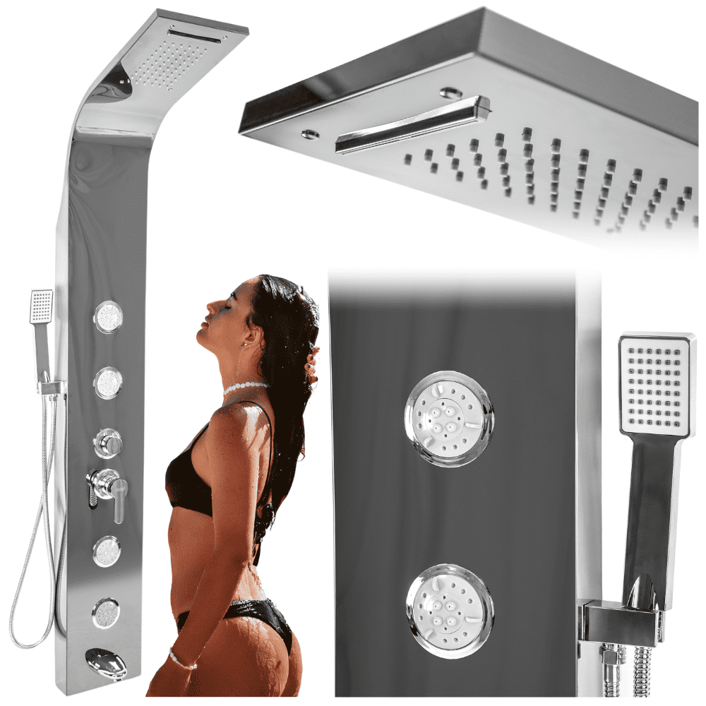 ⚪⚫️ TUŠ PANEL DEŽNI TUŠ S SLAPOM IN HIDROMASAŽO – KROM