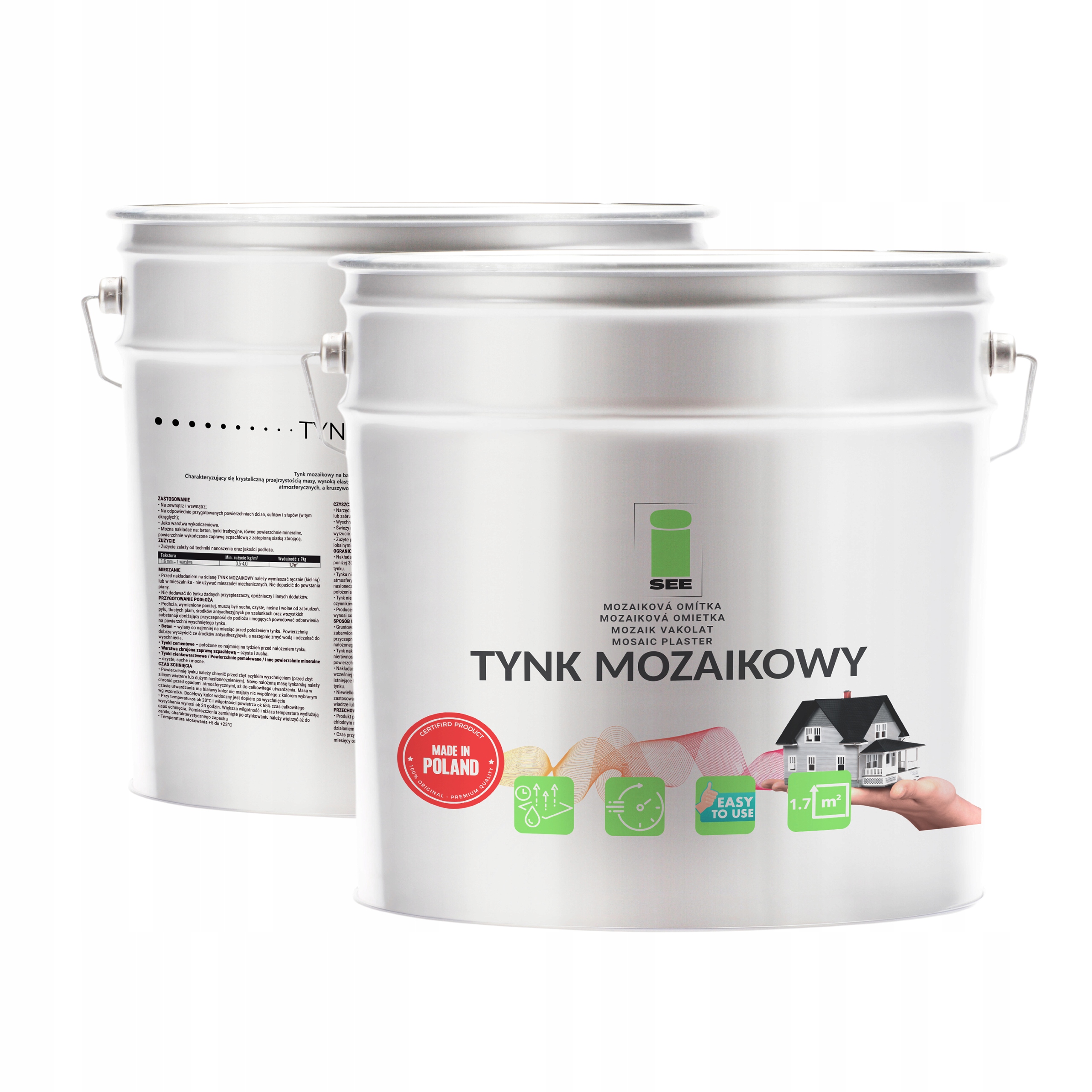 - Izkoristek iz 7 kg vedra : 1,7 m2