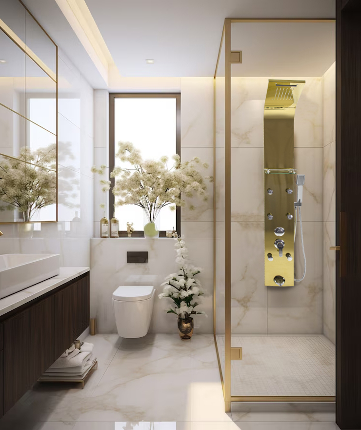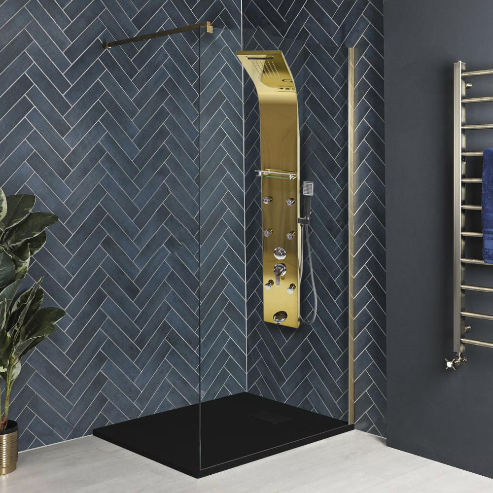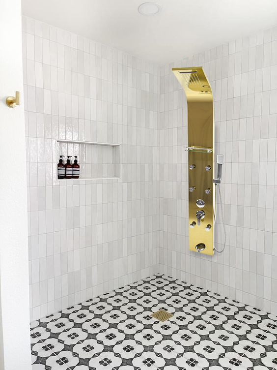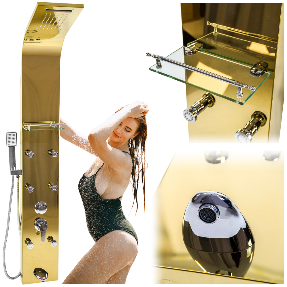 ⚪⚫️ TUŠ PANEL DEŽNI TUŠ S SLAPOM IN HIDROMASAŽO – ZLAT