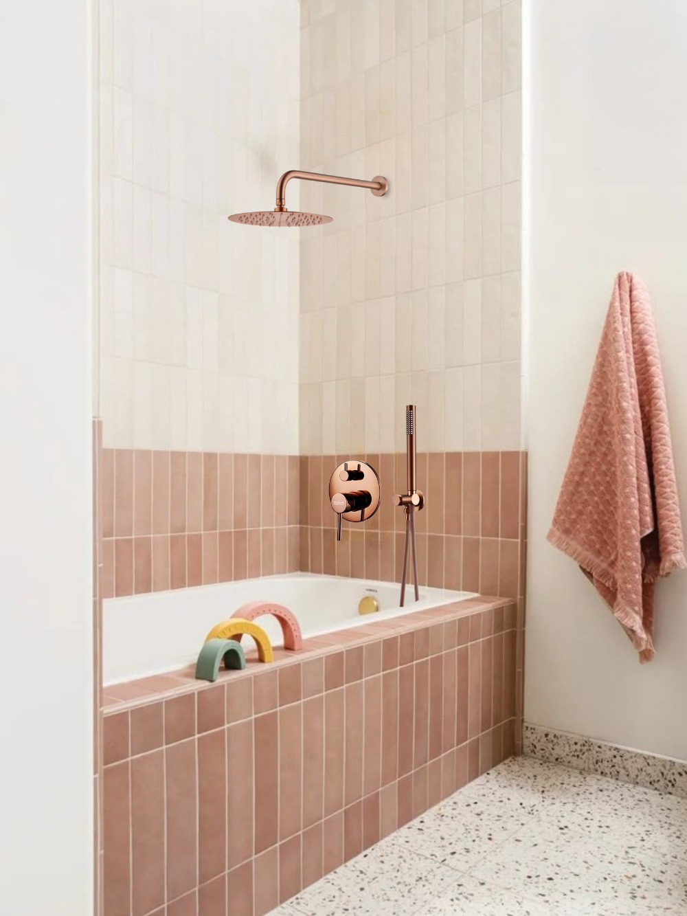 ⚫️⚫️ VGRADNA ARMATURA ZA TUŠ ROSARO Z DEŽNIM PRHOM – ROSE GOLD ⚫️⚫️
