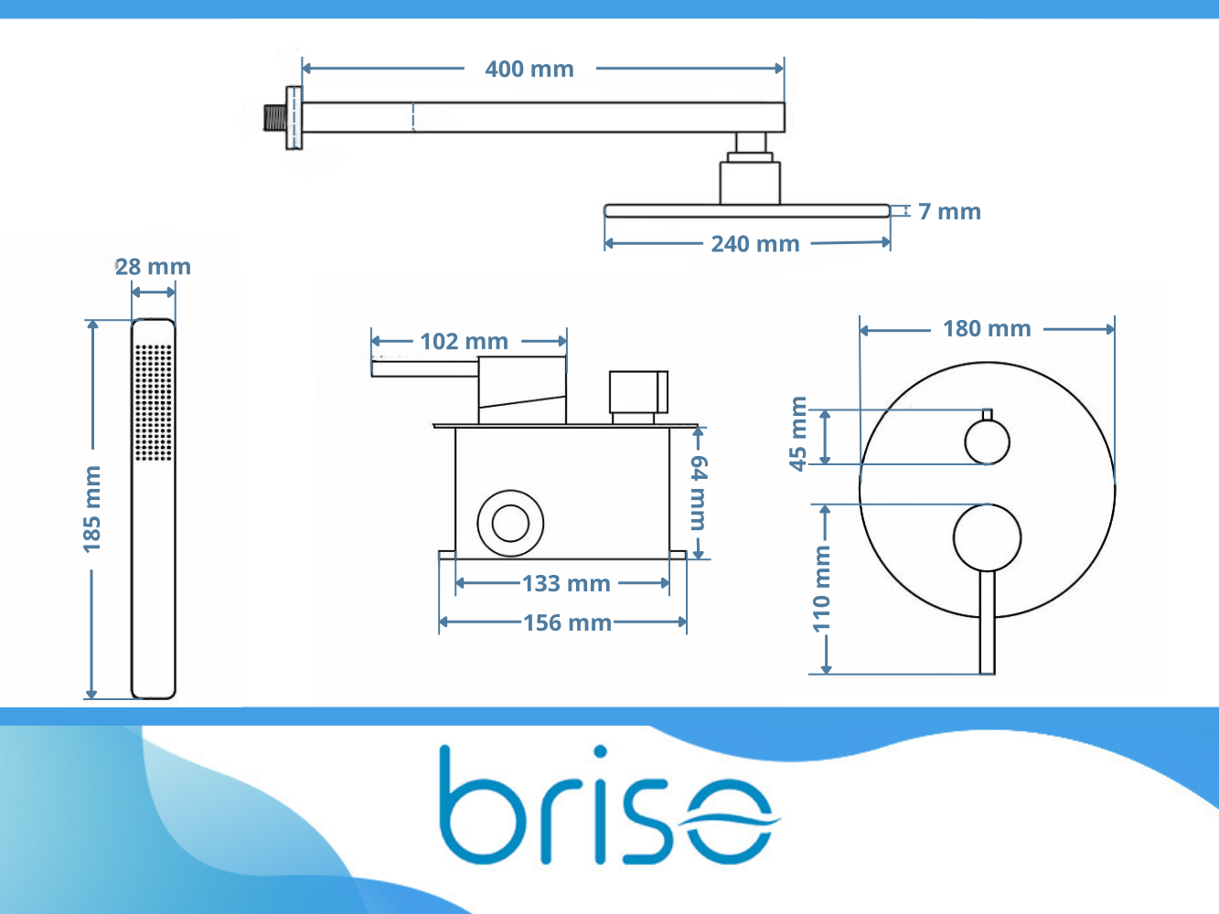shumee Stenska mešalna miza za kad s tušem in kompletom za dežno prho