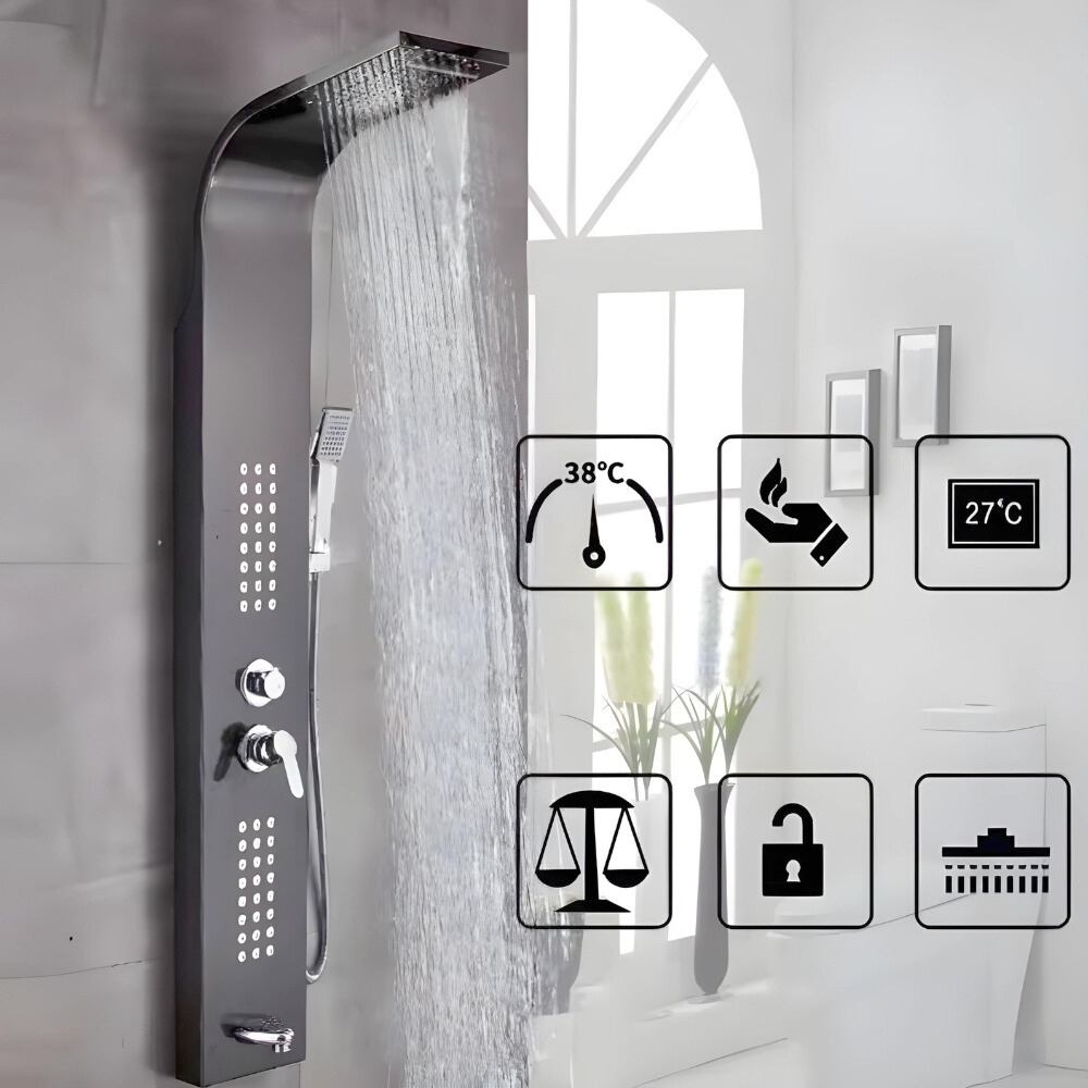 ⚪⚫️ TUŠ PANEL S PITAMI, HIDROMASAŽNO KABINO, DEŽNI TUŠ IZLIV ANTRACIT⚪⚫️