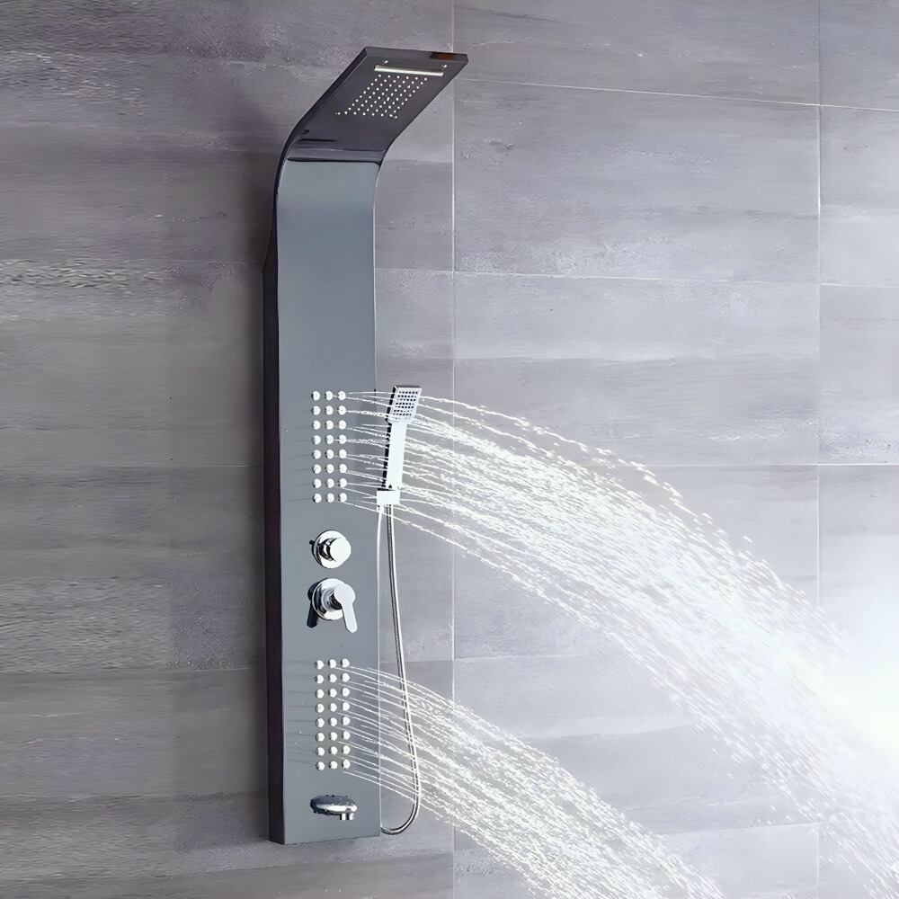 shumee Tuš panel s pipo in hidromasažno kabino, deževno prho, antracitni izliv