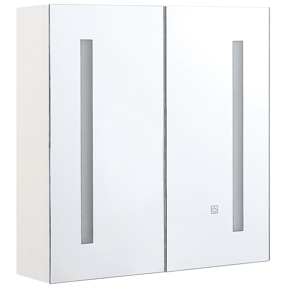 Beliani Kopalniška ogledalna omarica z osvetlitvijo LED 60 x 60 cm bela srebrna CHABUNCO
