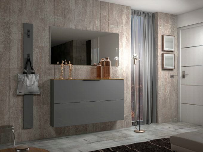 - Material: sijajni sivo lakiran melamin