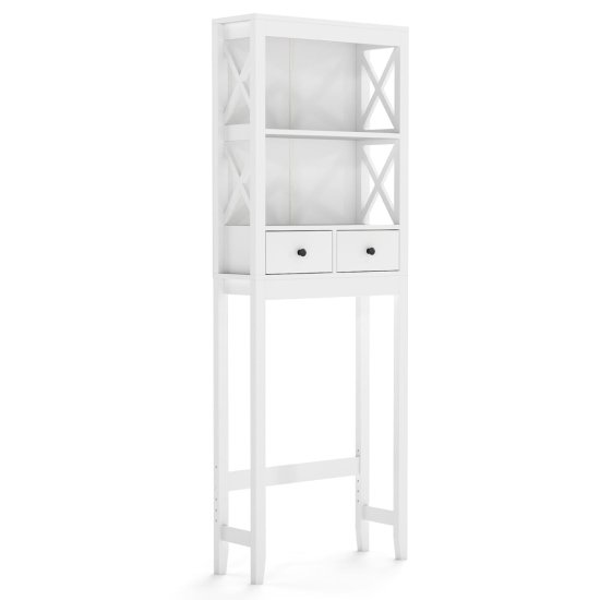 Maksimalno izkoristite prostor za shranjevanje v kopalnici s to polico nad straniščem, ki ima tri odprte police in dva predala za organizirano in dostopno shranjevanje. Zasnovano za varnost in enostavno namestitev.