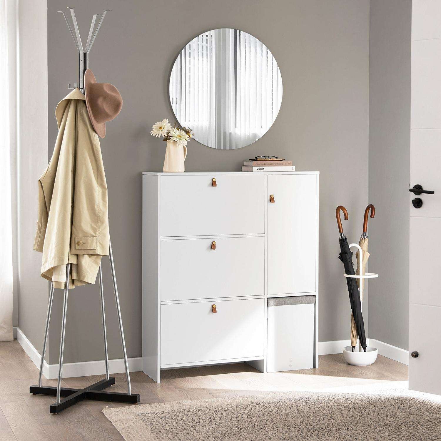 Ta omarica za čevlje ponuja praktično shranjevanje za urejen hodnik in lepo zložene čevlje. Njena prostorsko varčna zasnova pomaga ohranjati urejenost tal ter zagotavlja, da vaša obutev ostane sveža in dobro prezračena. Celoten opis