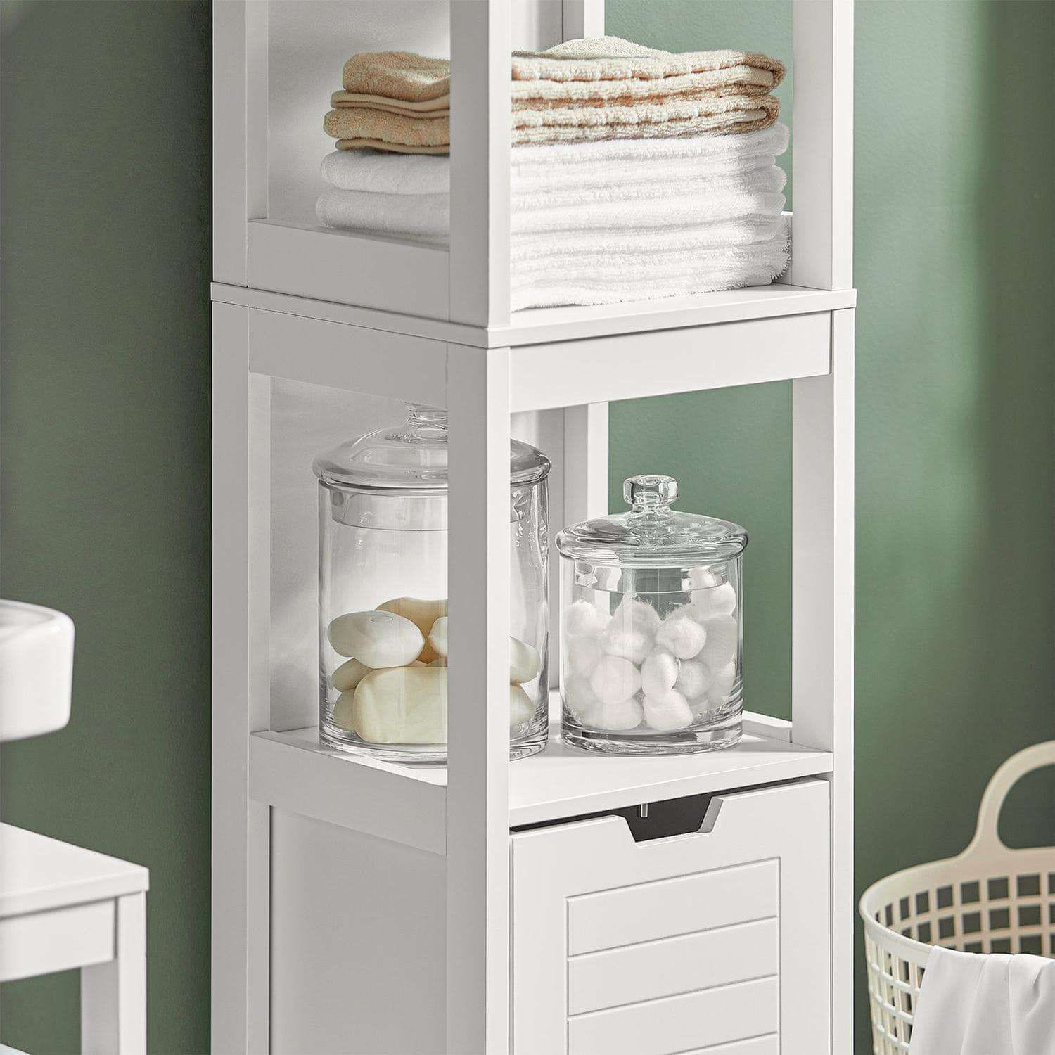 Ta visoka omarica za shranjevanje je idealna za dodaten prostor za shranjevanje v vaši kopalnici kuhinji ali kateremkoli prostoru kjer potrebujete dodatno organizacijo. Njena kompaktna zasnova omogoča enostavno postavitev v ozke prostore zaradi česar je vsestranska rešitev za različne prostore. Omarica je stabilna in enostavna za postavitev s funkcijami ki ji pomagajo ostati varno na mestu.