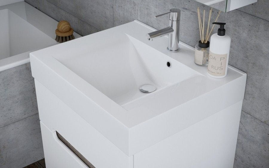 TBoss Kopalniška omarica z umivalnikom LUNA 60 cm bela visoki sijaj