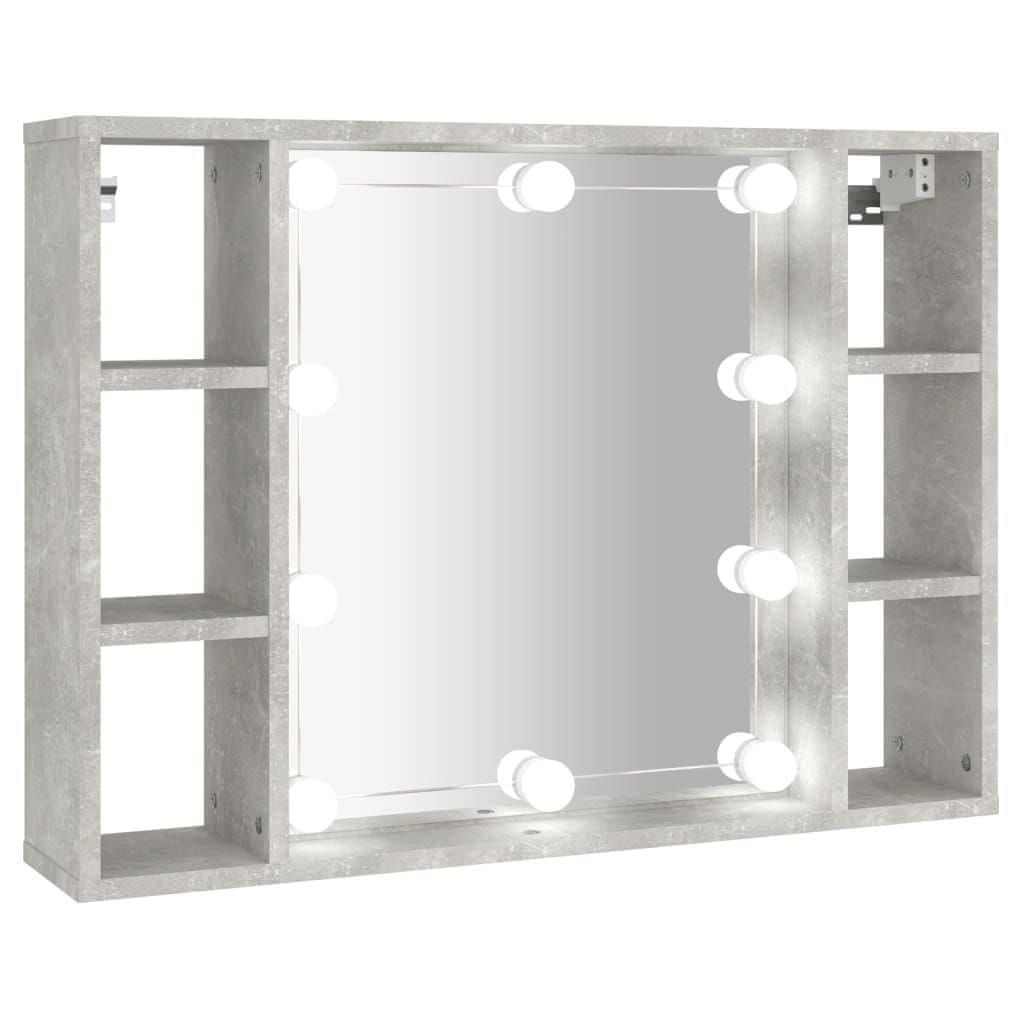 Vidaxl Omarica z ogledalom in LED lučkami betonsko siva 76x15x55 cm