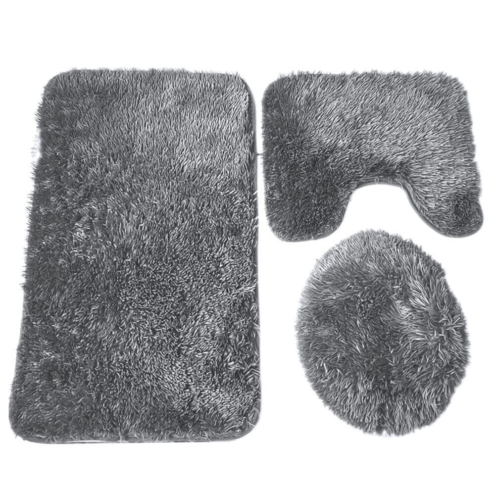 Komplet kopalniških predpražnikov 3 v 1 – poliester + spominska pena, dimenzije: 50×80 cm (pravokotna), 50×40 cm (izrez za straniščno školjko), 45×40 cm (prevleka za desko), hitro vpijanje vode, nedrseče dno Celoten opis