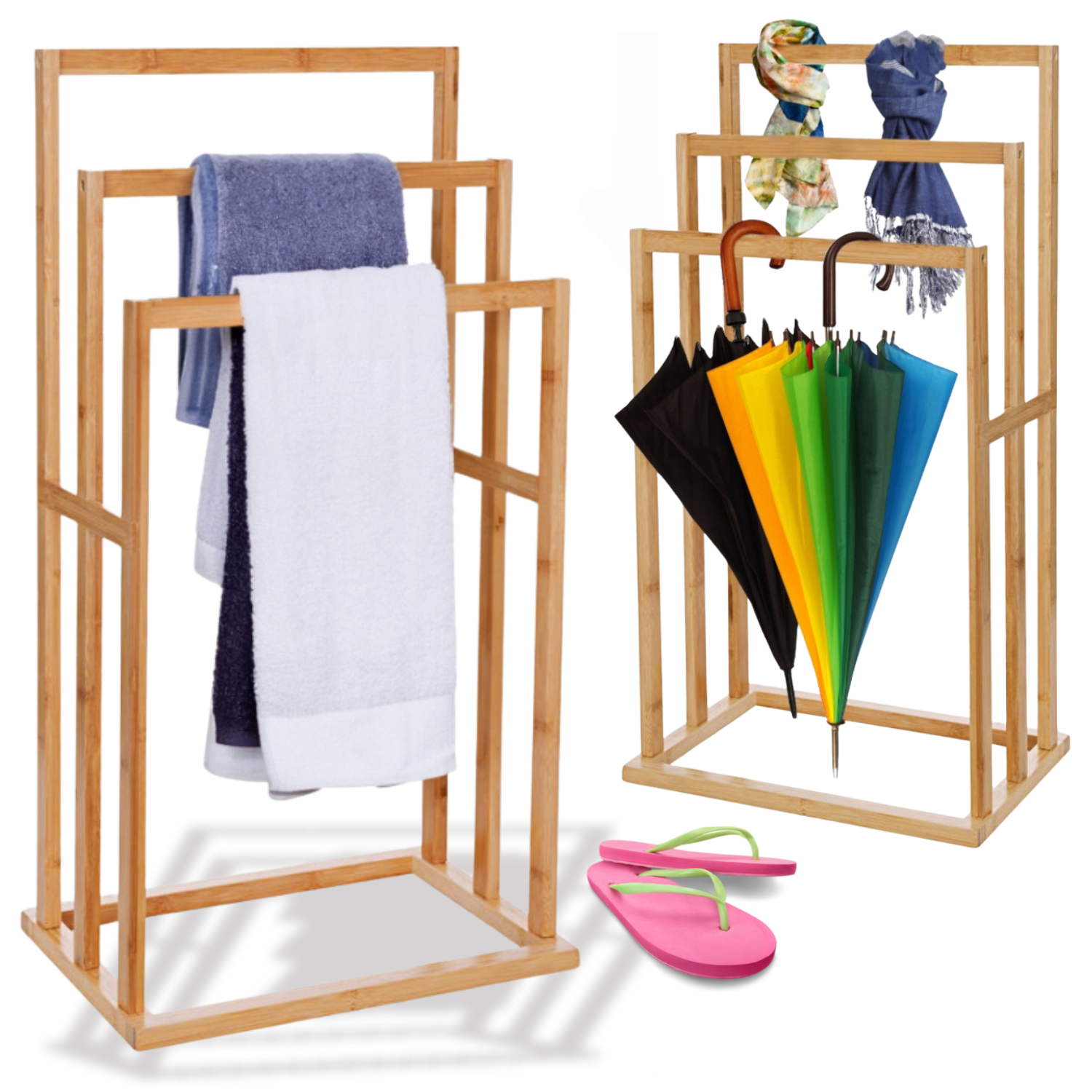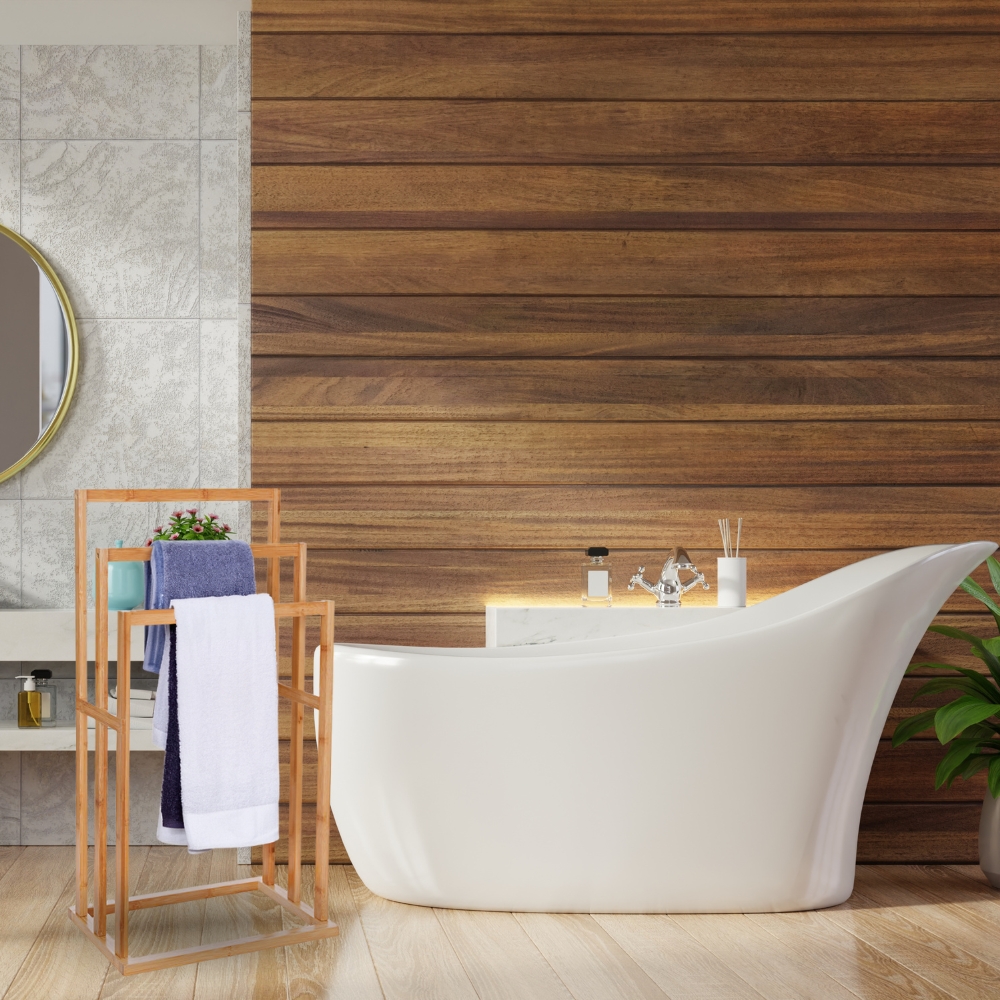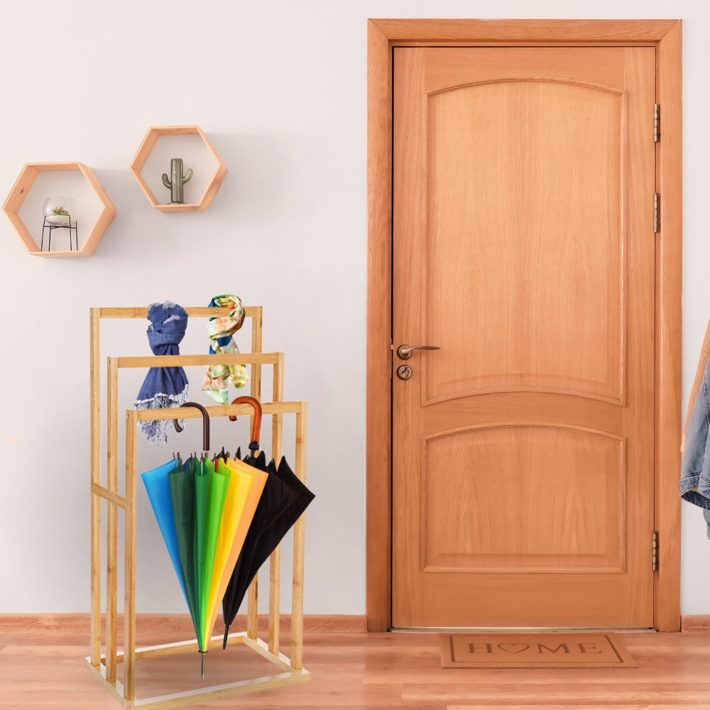 Ta obešalnik za plašče, izdelan iz visokokakovostnega bambusa , izžareva naravno toplino in eleganco. Njegova gladka, enakomerna površina ni le estetska , ampak je tudi enostavna za čiščenje. Bambus je trpežen material, odporen na vlago in temperaturne spremembe, zaradi česar je idealen za uporabo v kopalnicah.