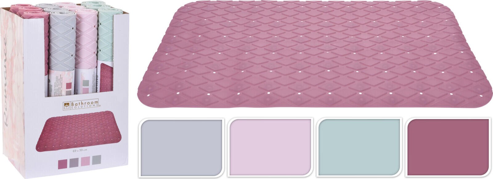 Kopalniška podloga 69×39cm, mešanica barv Podloga je idealna za uporabo v kopalnicah in straniščih, kjer stopala ne bodo več hladna ob golih tleh. Prav tako deluje kot zaščita pred zdrsom na mokrih tleh. Zlahka ga je mogoče oprati. Barva: siva, zelena, svetlo roza, temno roza Dimenzije: 69 × 39 Celoten opis