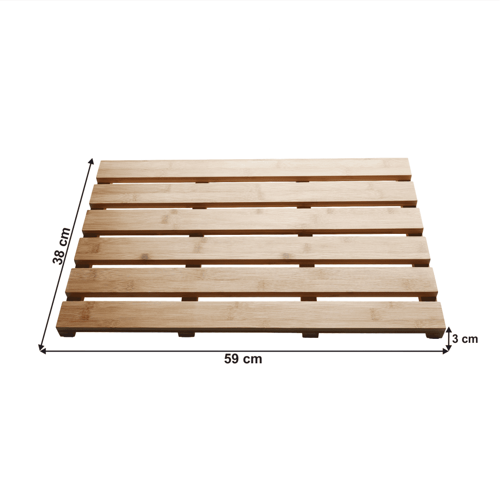 Material: lakiran bambus Barva: naravna Dimenzije (ŠxGxV): 59×38×3 cm kopalniška podloga S protizdrsnim zaključkom Za kopalnico, savno in wellness Enostavno vzdrževanje Ohranjeno kroženje zraka vsestranska uporaba sodobno oblikovanje Dobavljeno v monte Celoten opis