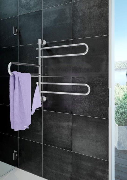 Sodoben električni stojalo za brisače z vrtljivimi rokami za enostavno obešanje brisač, idealen za elegantne in manjše kopalnice. Glavne prednosti 180° vrtljive roke za enostavno obešanje in sušenje brisač Minimalistična zasnova in prostorsko varčna zasnova Notranji grelni kabel za enakomerno segrevanje Možnost skrite ali kabelske povezave Uporaba Za sušenje in predgrevanje brisač v domačih in hotelskih kopalnicah Primerno za stensko montažo v prostorih z omejenim prostorom Značilnosti Električni grelnik brisač z vrtljivimi rokami, ki zagotavljajo svobodo gibanja Stikalo, nameščeno na spodnji strani grelnika brisač Priključitev možna skrita ali preko zunanjega kabla (naročilo je potrebno posebej – koda naročila EK) Eleganten in funkcionalen element sodobne kopalnice Tehnični parametri Tip: Električni grelnik brisač Konstrukcija: Vrtljive roke, kot vrtenja 180° Grelni element: Integriran grelni kabel Krmiljenje: Stikalo na spodnji strani Priključitev: Skrita ali preko kabla (koda naročila EK) Napetost: 230 V Zaščitni razred: IP44 Dimenzije 675 × 750 mm Moč: 54 W Barva: Polirano nerjaveče jeklo Zahvaljujoč S sodobnimi termostati lahko enostavno nadzorujemo temperaturo v prostoru, kjer se nahaja radiator. To omogoča individualne nastavitve temperature za vsak prostor, kar poveča udobje in prihrani energijo. Radiatorji so na voljo v različnih stilih in izvedbah, kar omogoča njihovo integracijo v različne interierje. Izbirate lahko med tradicionalnimi dizajni ali sodobnimi različicami. Za visokokakovostno in učinkovito ogrevanje je Richter + Frenzel pravi naslov. Naša široka paleta izdelkov vključuje celotno paleto za opremljanje vodovodnih in ogrevalnih sistemov, kopalnic, stranišč in drugih prostorov v vašem domu ali poslovni stavbi.
