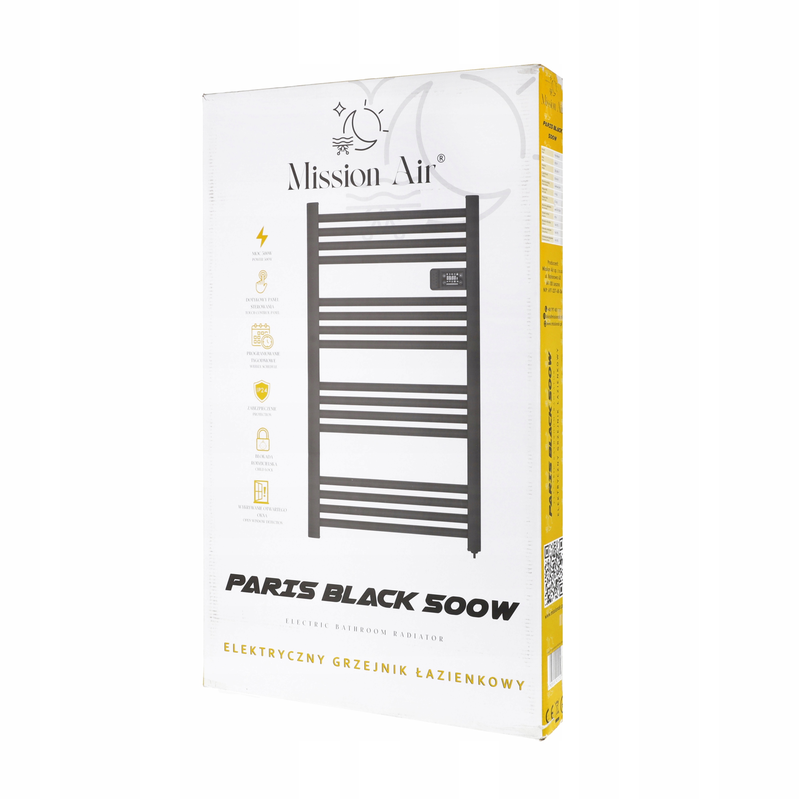 , dolgim približno 1,5 m (150 cm), , kar omogoča veliko svobodo pri izbiri mesta namestitve. Pomembno je, da radiator vključuje vse potrebne dodatke za montažo in namestitev. Kopalniški radiatorji Mission Air® PARIS z močjo 500 W so na voljo v beli ali črni barvi.