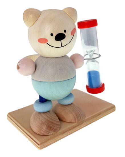 S to peščeno uro bo umivanje zob še bolj zabavno. Peščena ura traja 2 minuti. Za telesom medvedka je držalo za zobno ščetko.Glavneznačilnosti: z držalom za zobno ščetko 2 min. čas razlitja velikost 10 cmizdelan iz originalnega neobdelanega lesa