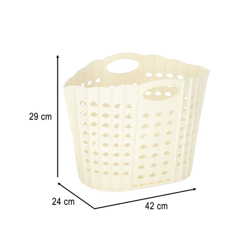 Zložljiv koš za perilo v krem barvi pomaga ohranjati red v kopalnici in domu. Po zložitvi zavzame malo prostora, ima trdna ročaja za udobno prenašanje. Primeren tudi za brisače ali droben tekstil. Celoten opis