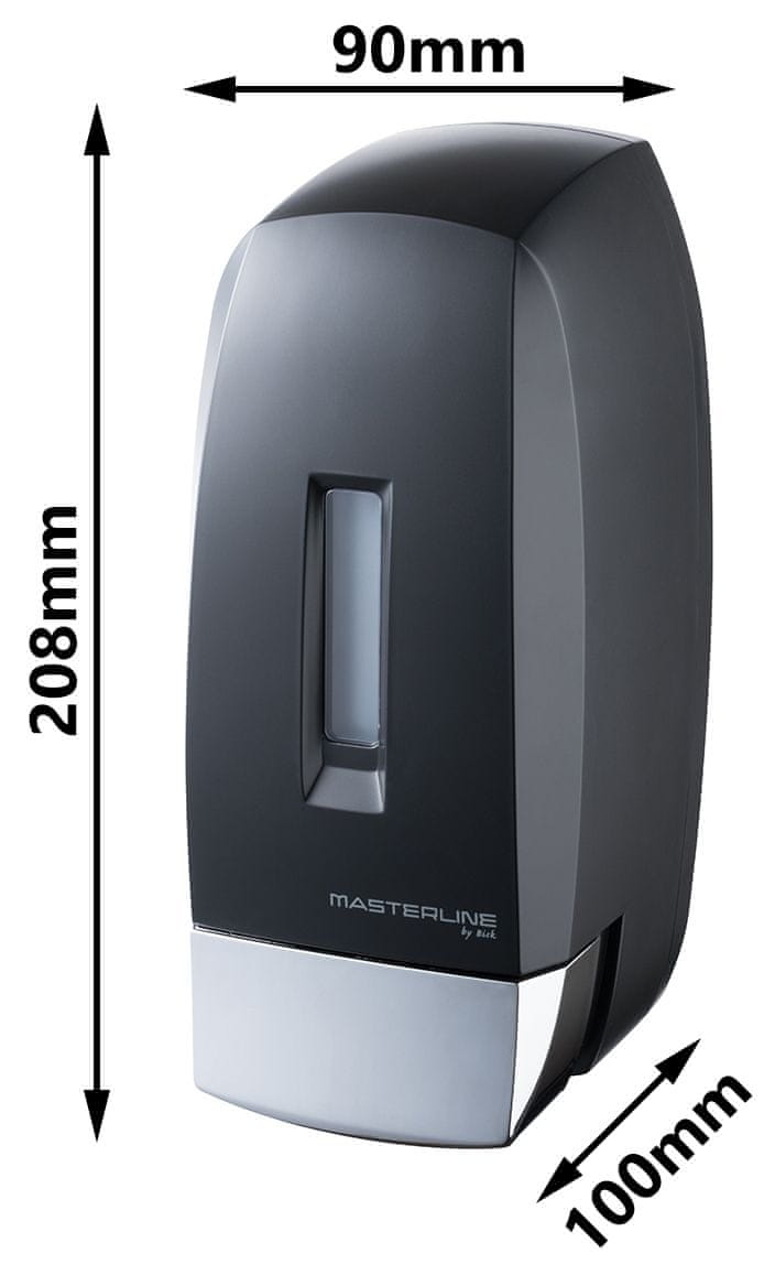 Polnilni dozirnik tekočega mila za stensko montažo, idealen za vse kopalnice in kuhinje. Tehnični podatki: – Prostornina: 500 ml; – Material: črn ABS; – Dimenzije: 208 × 90 × 100 mm.