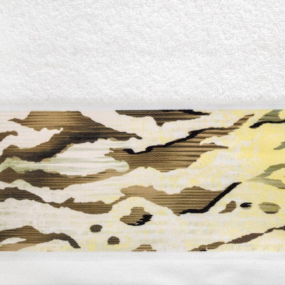 Brisača s potiskanimi robovi širina: 70 cm, dolžina: 140 cm, barva: bela, gramatura: 500 GSM, sestava: 100 % bombaž; 96 % bombaž, 4 % poliester