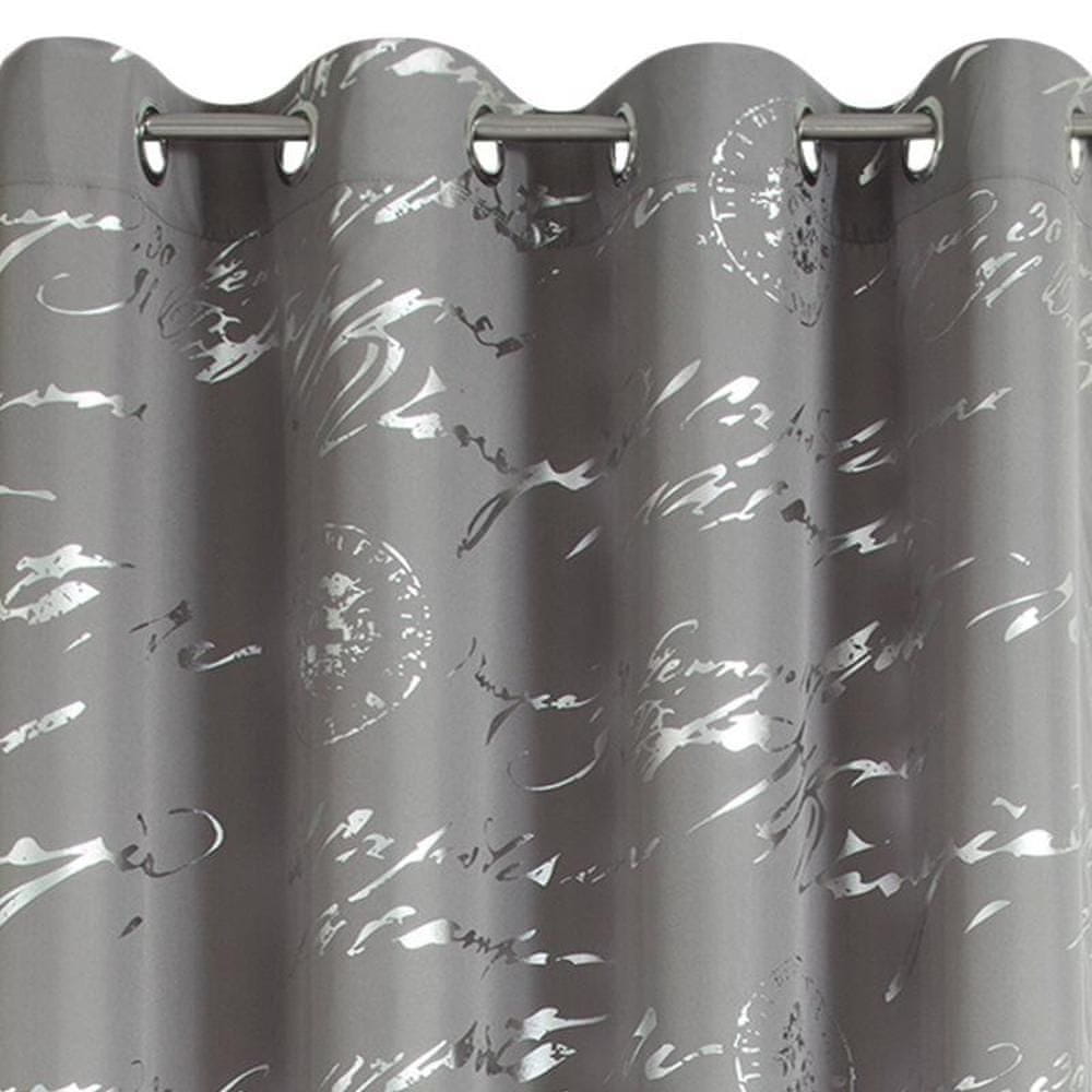 Gotova zavesa s srebrnim potiskom širina: 140 cm, dolžina: 250 cm, barva: siva, gramatura: 140 GSM, sestava: 100 % poliester