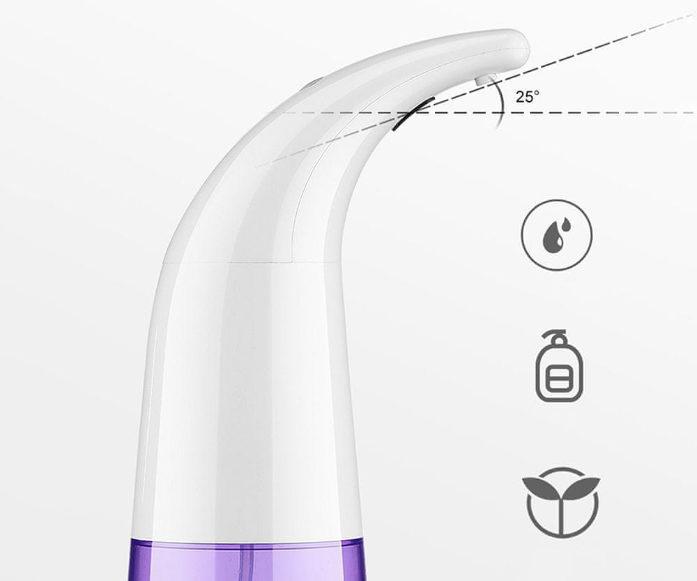 S trpežnim brezkontaktnim dozirnikom mila bo umivanje ali razkuževanje rok popolnoma enostavno in funkcionalno. Na spodnji strani vstavite 4× AA baterije, ki so priložene v pakiranju, in dozirnik je pripravljen na uporabo.