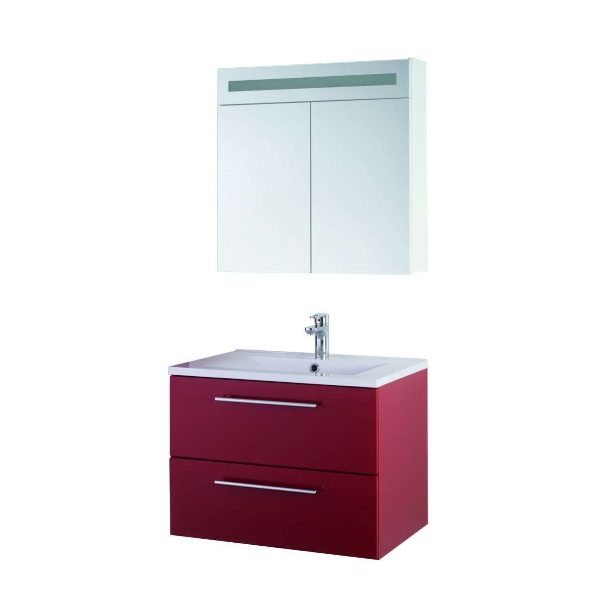 Komplet kopalniškega pohištva v bordo barvi, ki se bo kar zlil z vašo kopalnico. Komplet vsebuje zgornjo visečo omarico z ogledalom, LED osvetljavo, vtičnico in stikalom v beli barvi Celoten opis
