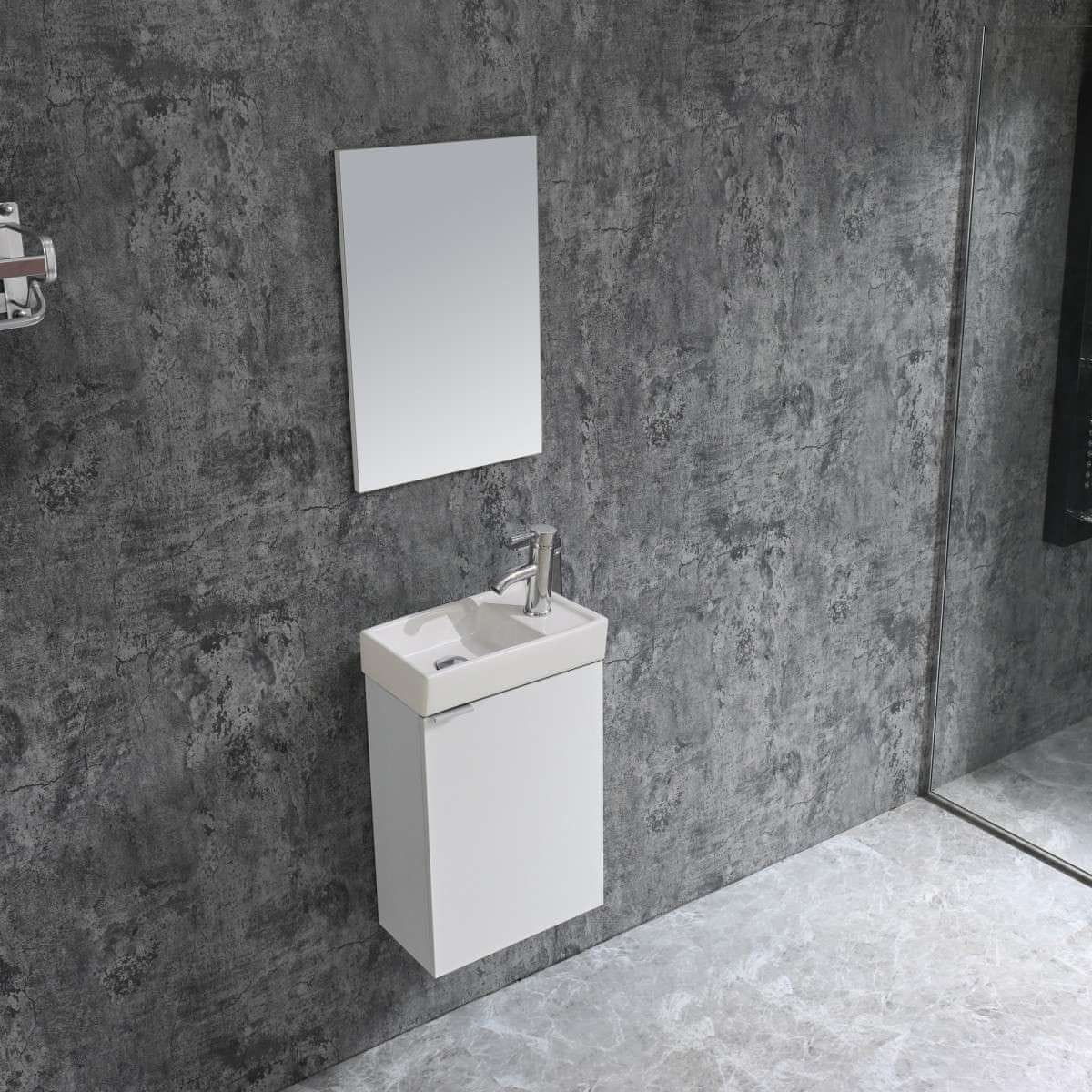 Kakovostna viseča omarica z umivalnikom, ki se bo prilegala tudi manjšim kopalnicam ali toaletam. Vrata imajo mehanizem za mehko zapiranje, k omari pa je dodan tudi ustrezen velik umivalnik. Omaro je potrebno sestaviti.