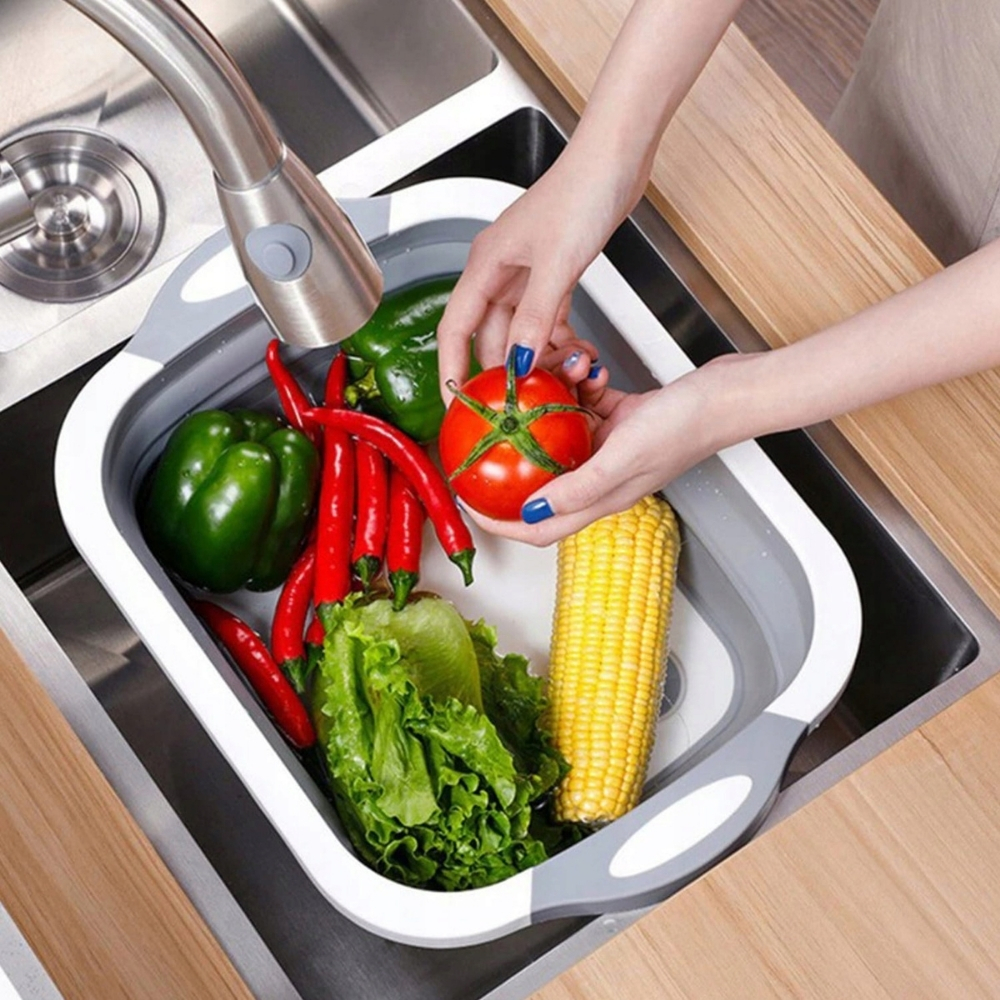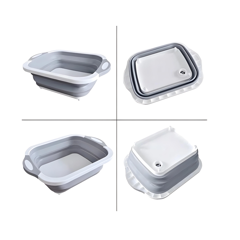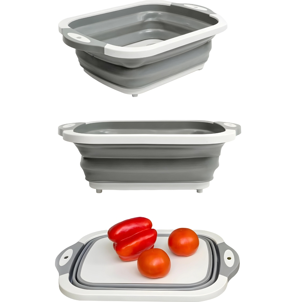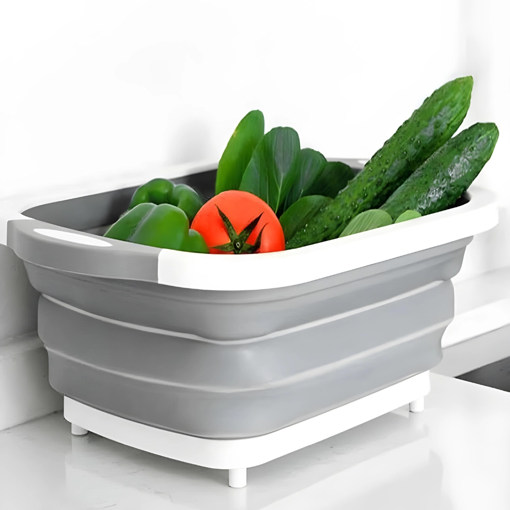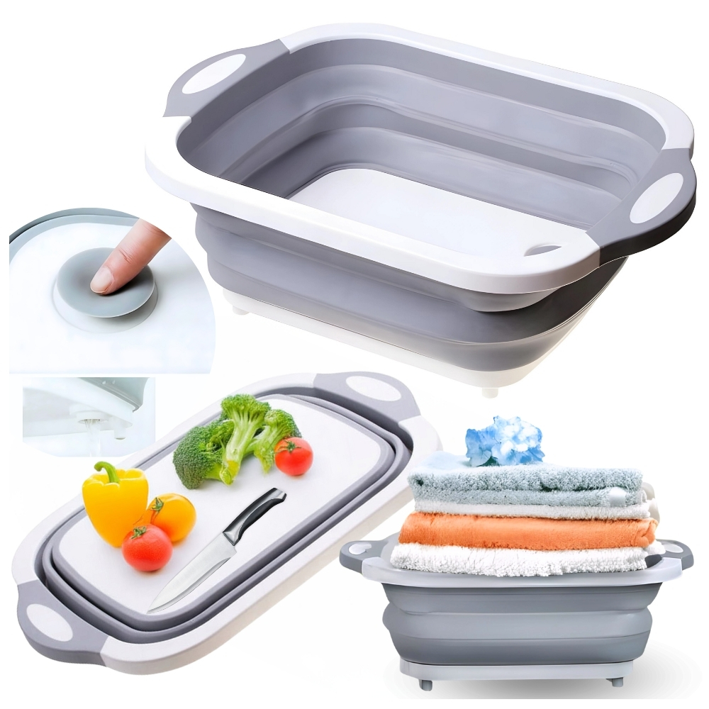 ✳️ZLOŽLJIVA SILIKONSKA POSODA Z ODTEKOM TURISTIČNA KOMPAKTNA SIVA ZA ZELENJAVO PRALNICO MOBILNO PORABALO DESKA ZA REZANJE UNIVERZALNA PROSTORNINA 6L✳️