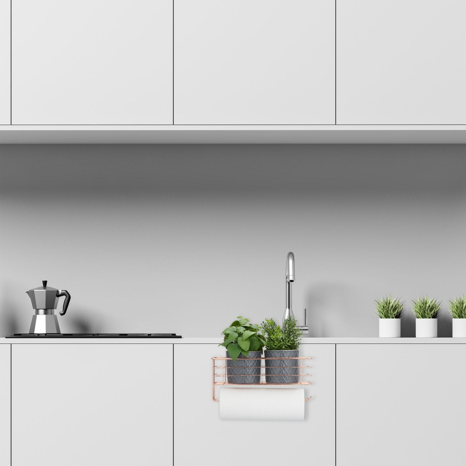 Optimizirajte svoj kuhinjski prostor s to visečo košaro na vratih z podajalnikom za papirnate brisače, popolno za odstranjevanje nereda s pultov in organiziranje osnovnih stvari.
