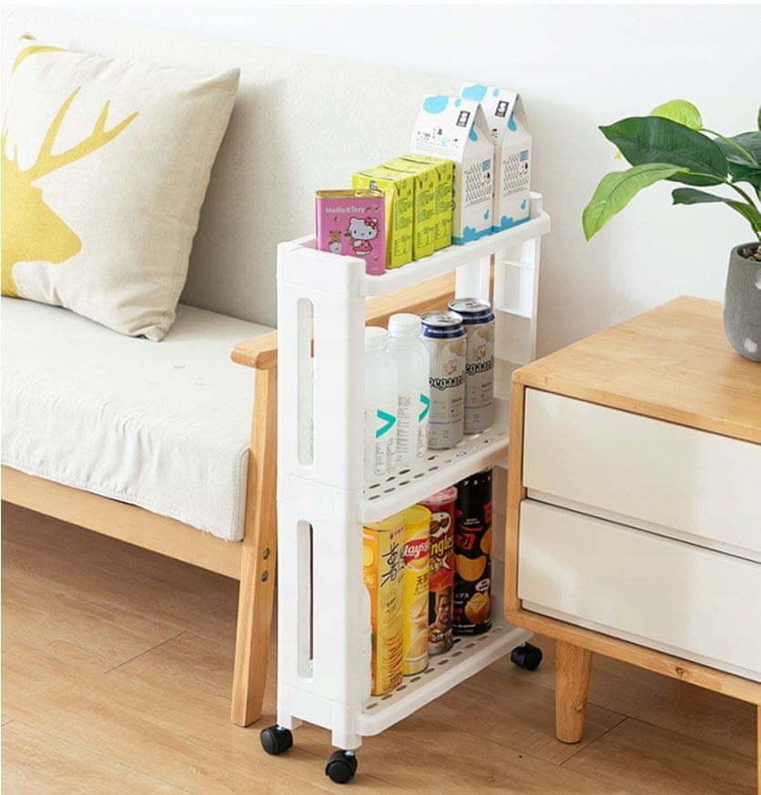 Prenosna Ožja Bela Večnamenska Omara na Kolesih je izjemno praktičen in vsestranski izdelek, ki se odlično obnese v različnih prostorih, kot so kuhinja, kopalnica, dnevna soba ali spalnica. Zaradi svojih kompaktnih dimenzij zavzema malo prostora, kolesa pa omogočajo enostavno in brez težav premikanje omare brez potrebe po dvigovanju. Omara je popolna za shranjevanje potrebščin, ki jih vsakodnevno potrebujete. V kopalnici lahko organizirate prostor za kozmetiko, pralni prašek ali gele za tuširanje, v kuhinji pa boste imeli rdeče s suhimi izdelki, pijačami ali omakami. Opremljena je s plastičnimi kolesi, ki ne puščajo sledi na tleh. Narejena je iz visokokakovostne trpežne umetne mase, kar zagotavlja dolgo življenjsko dobo in lep izgled v prostoru.