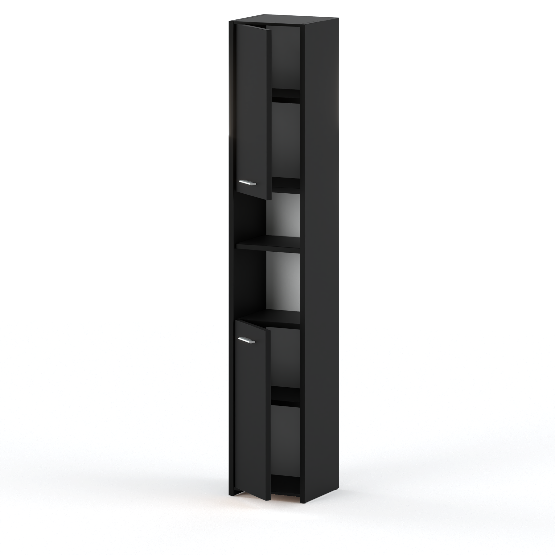 Črna prostostoječa kopalniška omarica, kopalniški steber s 6 policami, mansardna kopalnica