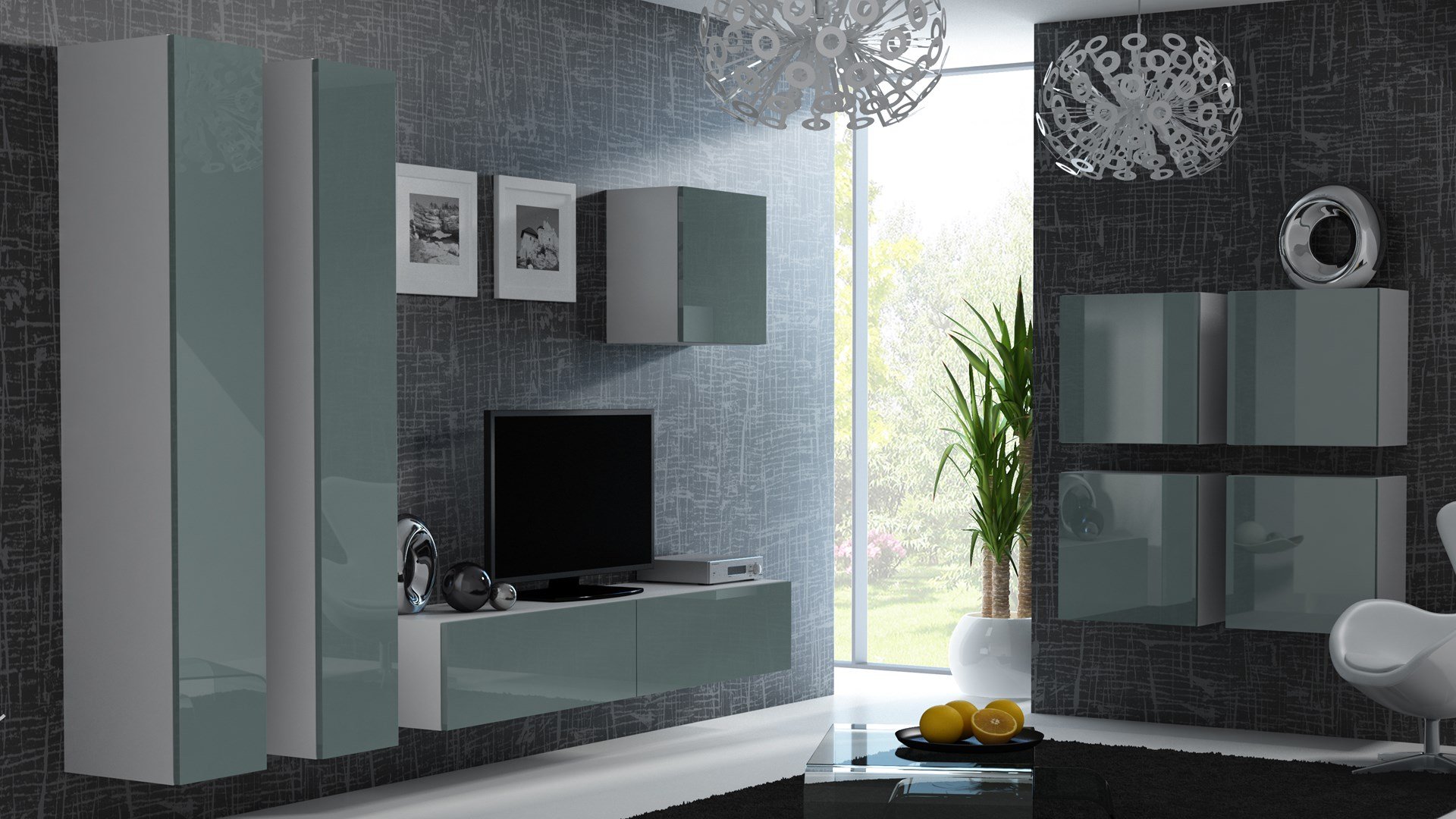 VIGO kvadratna vitrina 50/50/30 bela/siva sijajna Celoten opis