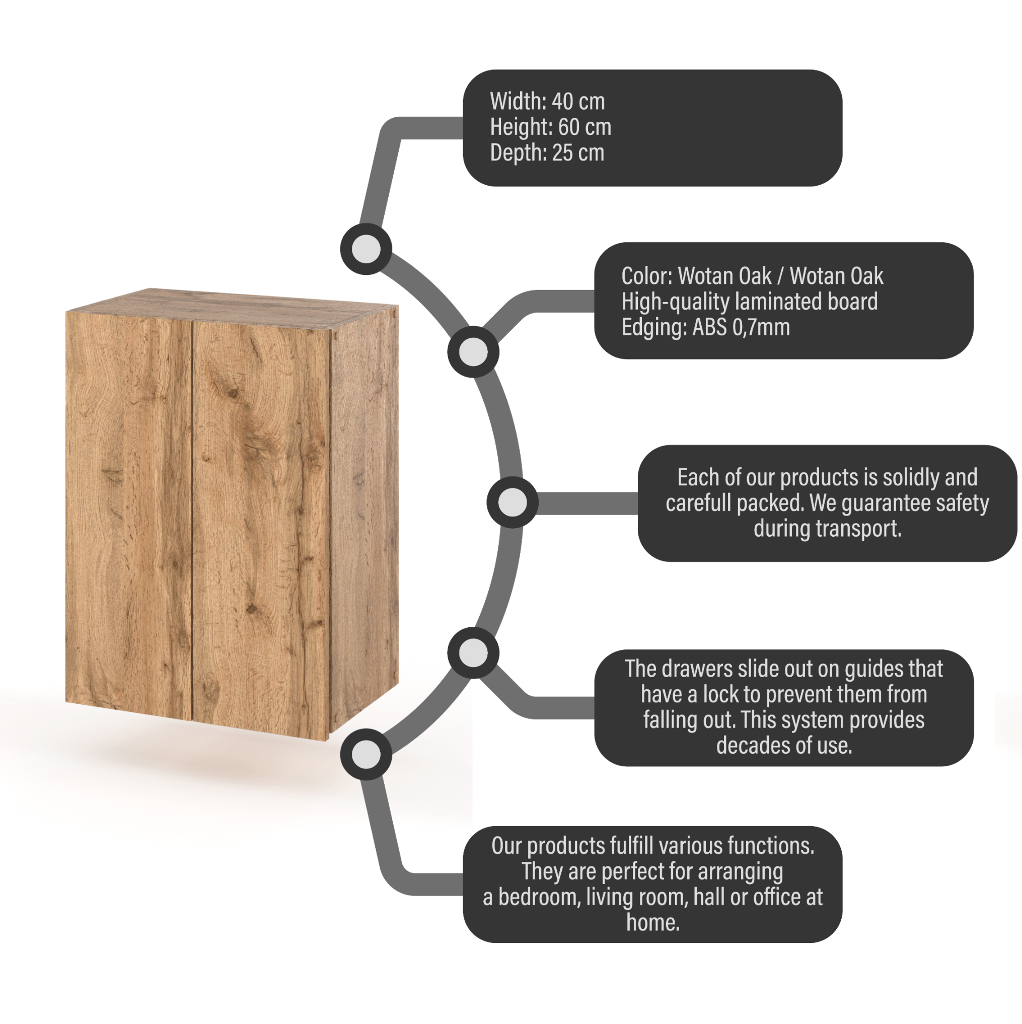•     Višina: 60 cm, Širina: 40 cm, Globina: 25 cm.