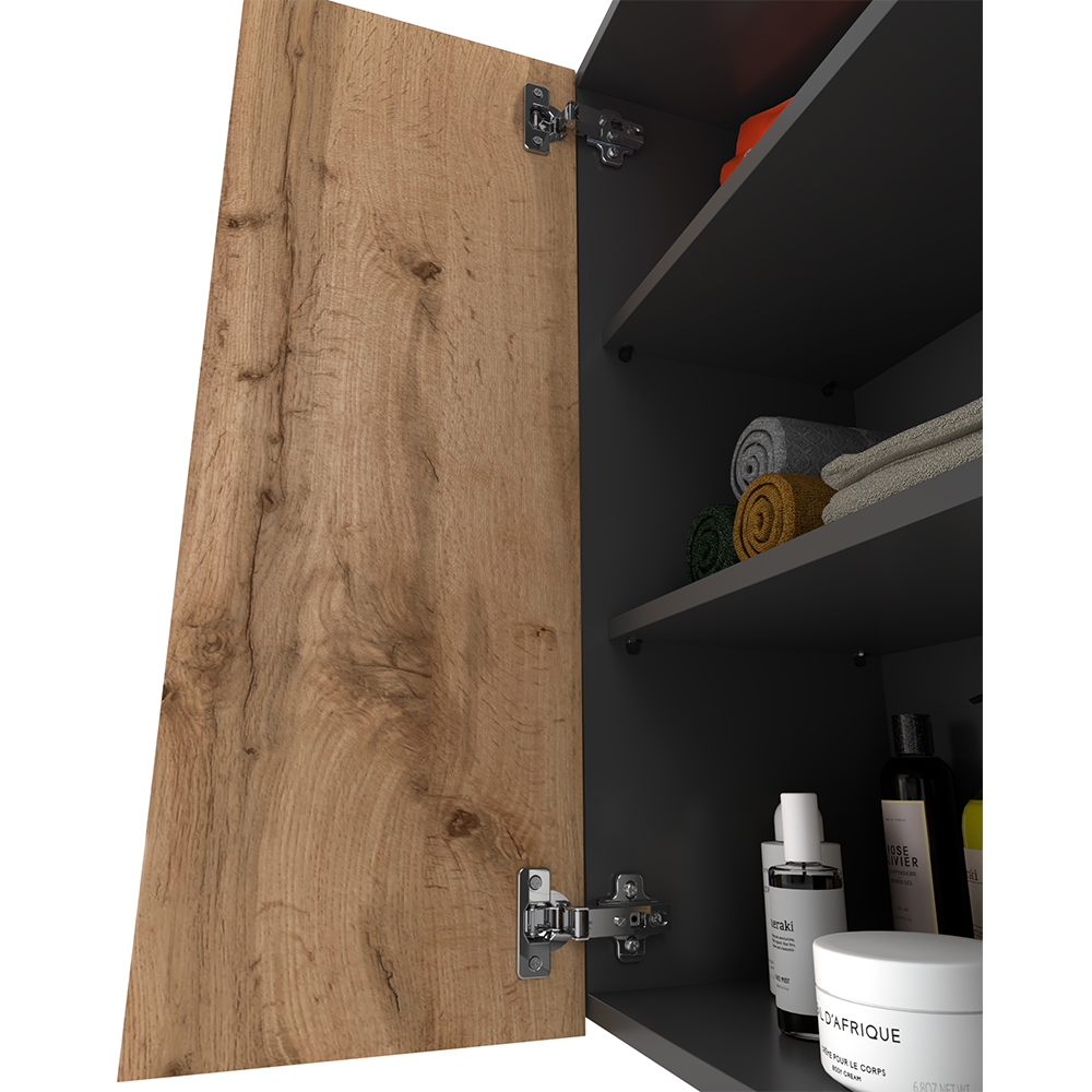 • 3 praktične police:Vključno z dnom omarice imate tri nivoje za shranjevanje, ki zagotavljajo veliko prostora za kozmetiko, brisače in druge kopalniške dodatke.