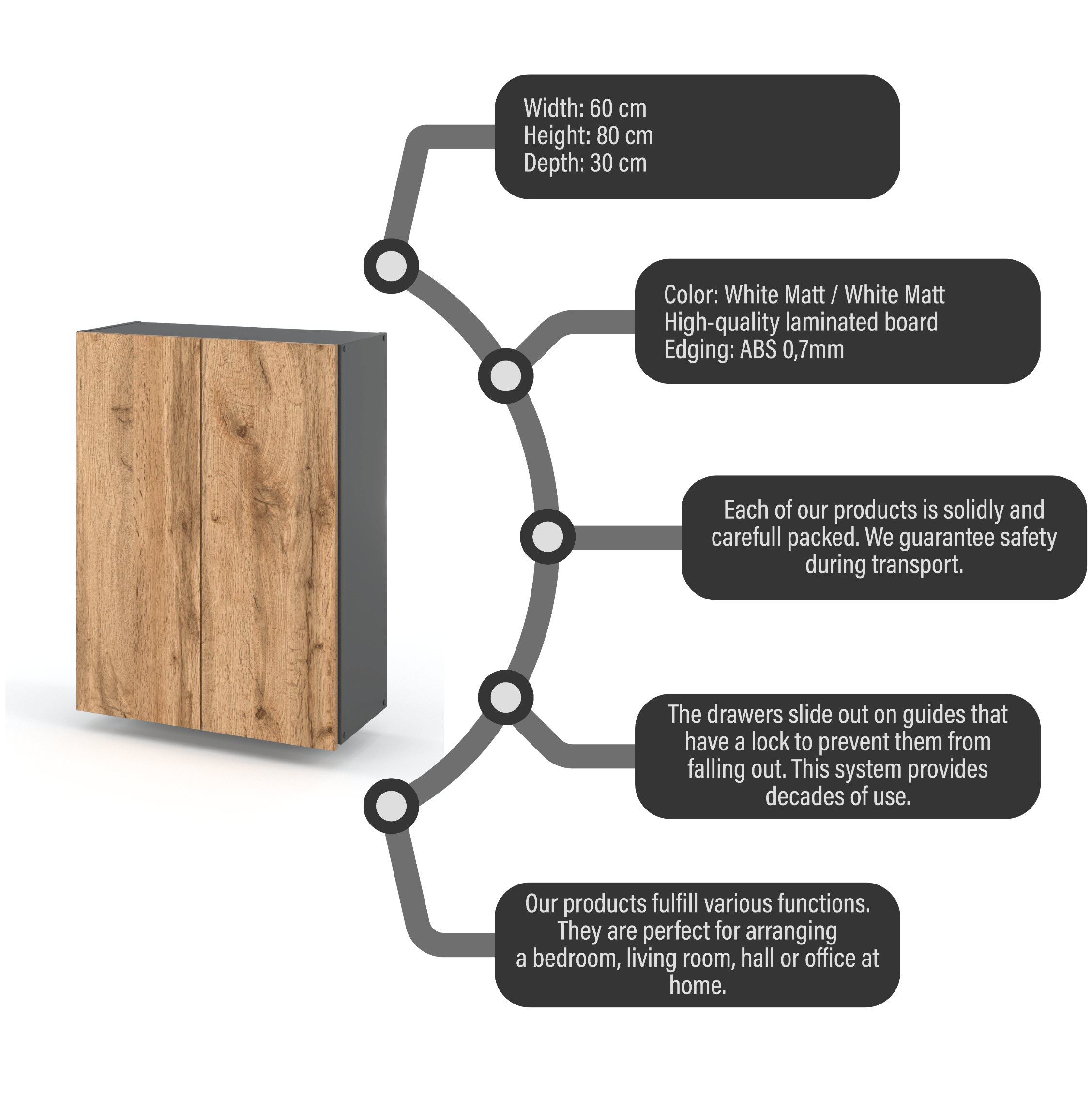 Iščete popolno rešitev za shranjevanje v vaši kopalnici? NašProstorna viseča kopalniška omarica 60 cm z mat površinoje popolna kombinacija elegance in praktičnosti. Ni le lep dodatek za vaš prostor, ampak tudi funkcionalen element, ki bo pomagal ohranjati stvari urejene.