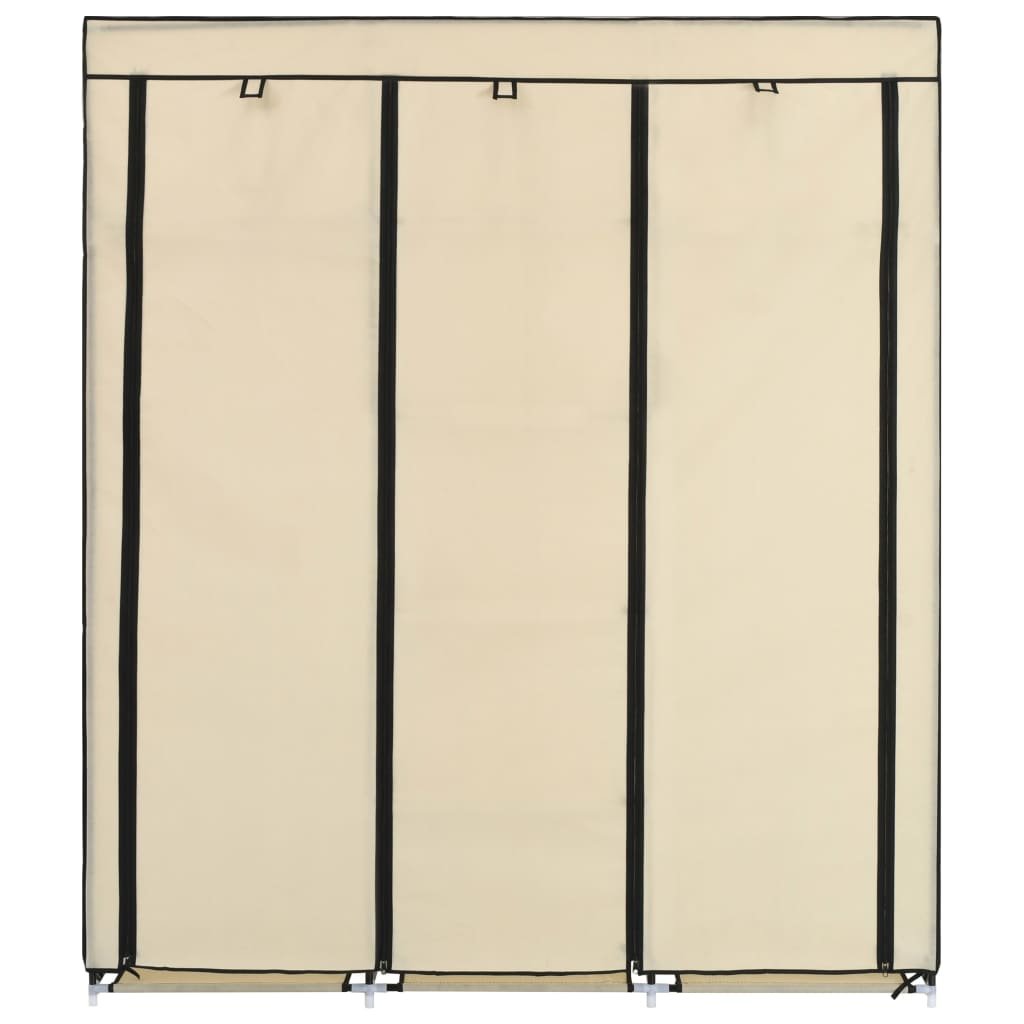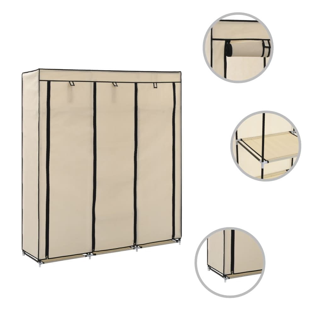 Vidaxl Garderobna omara s predelki in palicami krem 150x45x175cm blago