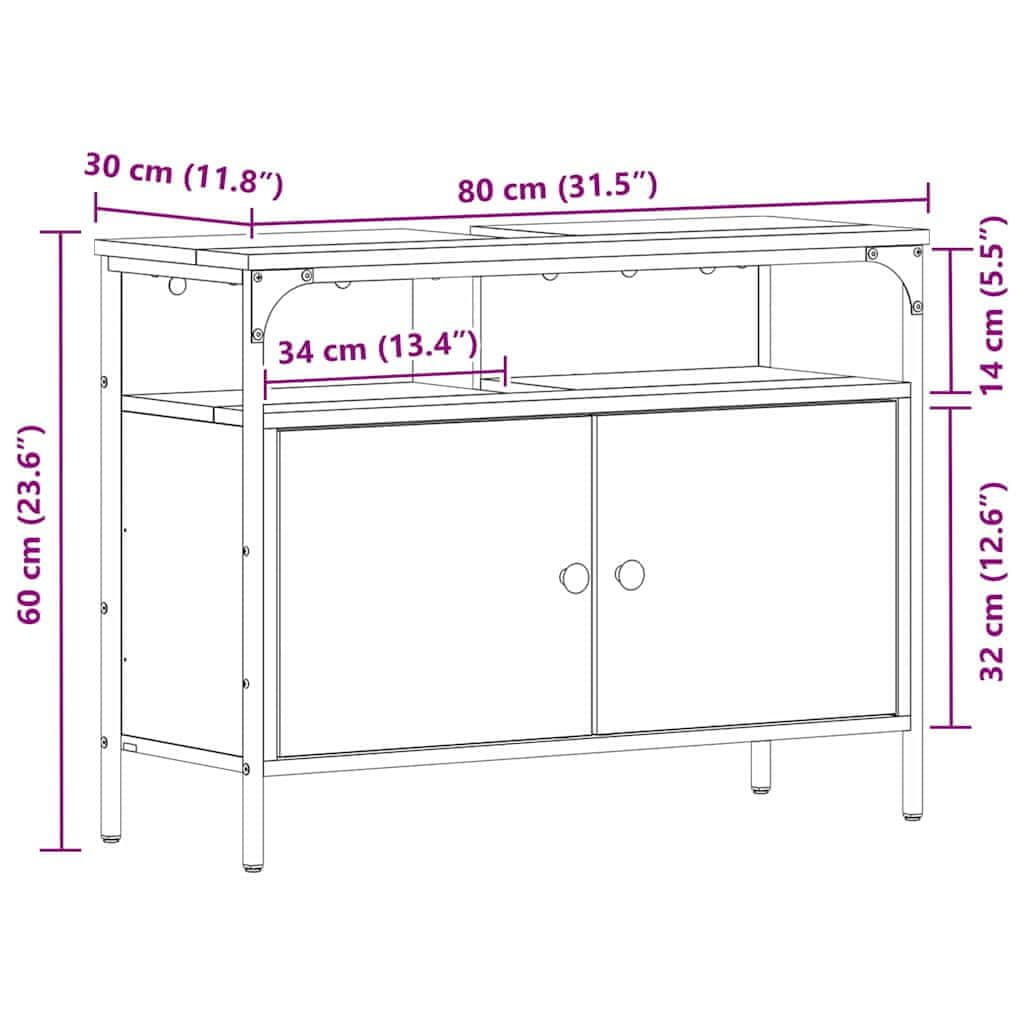 Vidaxl Omarica za kopalniški umivalnik Črni hrast 80 x 30 x 60 cm