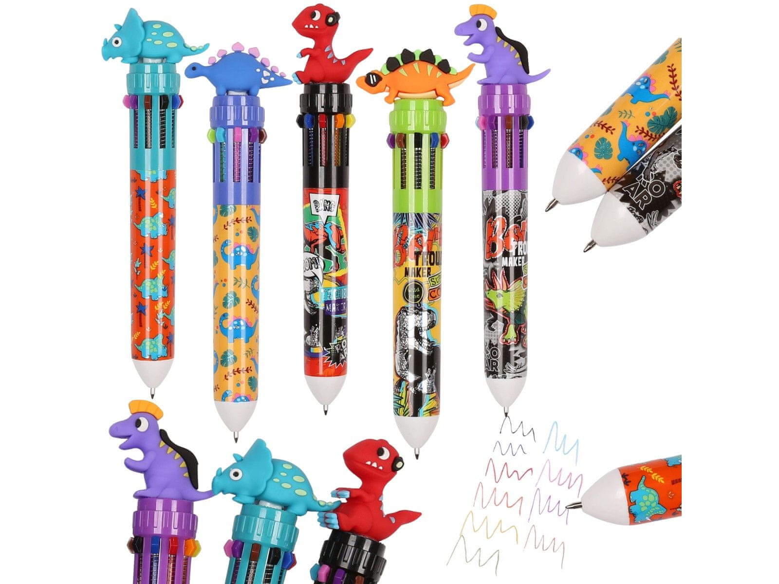 sarcia.eu Dinozaver VEČBARVNO pisalo 10v1, avtomatsko šolsko pisalo, 10 BARV 0,7 mm