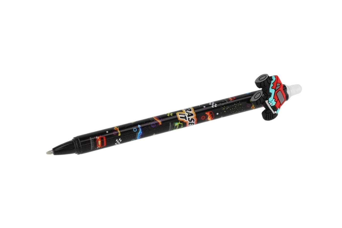 Gumijasto pero vsebuje posebno črnilo, ki se imenuje izbriši in prepiši ali izbriši in pusti, da se ponovno pojavi. Če naredite napako, preprosto obrnite pisalo in plastična konica bo izbrisala besedilo. Konica radirke segreje črnilo, to izgine in ga lahko ponovno napišete. Napišete lahko celo skrivna sporočila, po brisanju samo ohladite papir pod lediščem in besedilo se bo znova pojavilo. Velikost pisala: 16 cm. Ni igrača