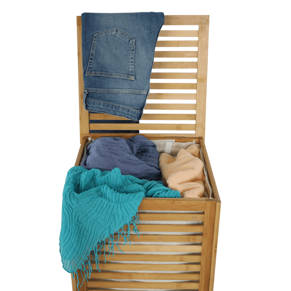 KONDELA Košara za perilo, lakiran bambus/bež, KOŠARA