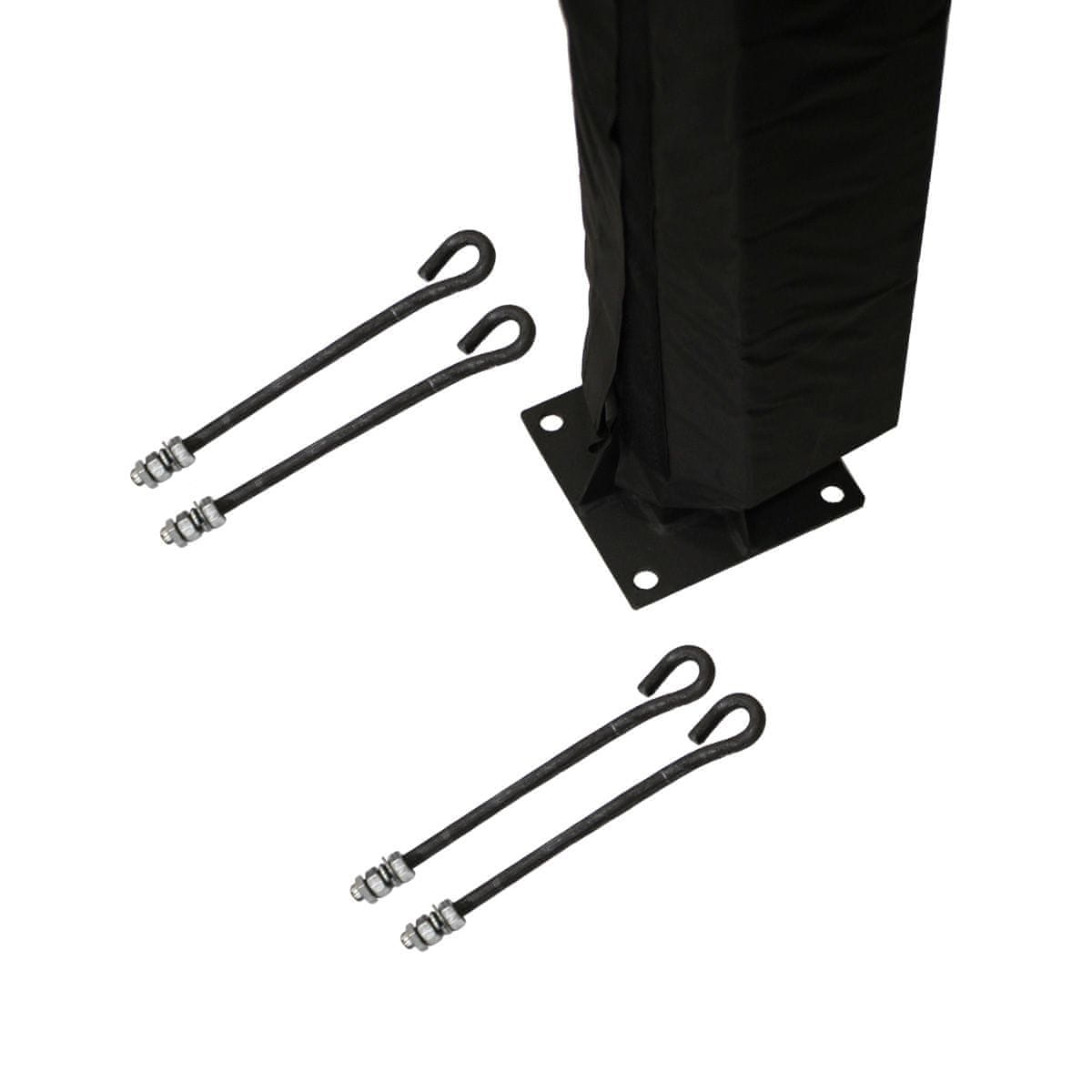 priloženi so 4 vijaki (pritrdilni kavlji) za sidranje v tla in distančnik za njihovo namestitev: dolžina vijakov 35 cm