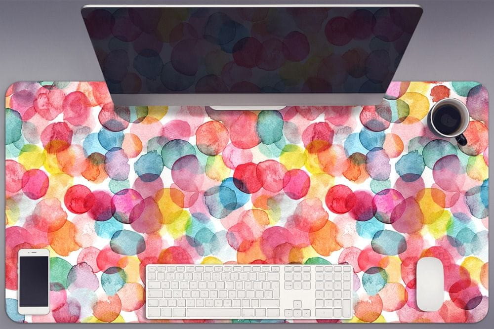 Podloga za pisalno mizo je popolna rešitev, ki jo lahko uspešno uporabljate na delovnem mestu. Netežavno čiščenje podloge ščiti mizo pred nepotrebnimi mehanskimi poškodbami in prahom ali polivanjem. Takšna zaščita mize bo podaljšala njeno življenjsko dobo in preprečila tudi hitro pregrevanje prenosnika ob dolgotrajnem delu. Namizna podloga Colorful bubbles kot dodatek k interierju podjetja vas bo spodbudil k delu in bo lepo presenečenje ter genialno darilo za novega zaposlenega.