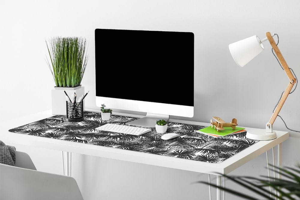 Podloga za pisalno mizo je moderen pripomoček, ki bo edinstveno dopolnilo k celotni notranji opremi. Pisalna miza bo dodatno zaščitena pred mehanskimi poškodbami in prahom, vaš prostor pa bo imel svež videz. Namizna podloga Črne palme bodo zagotovo vzljubili vaši otroci, ki večino dneva preživijo za mizo. Izberite svoj najljubši vzorec in uživajte v svoji novi dodatni opremi dalje časa.