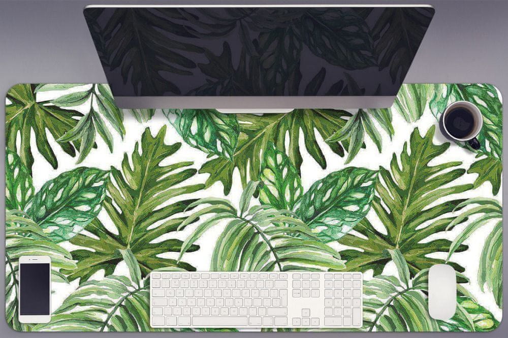 Podloga mizo je moderen detajl, ki bo izvirno dopolnilo k celotni notranji opremi. Pisalna miza bo dodatno zaščitena pred mehanskimi poškodbami in umazanijo, vaš interier pa bo imel svež videz. Namizna podloga Jungle leaves bodo zagotovo vzljubili vaši otroci, ki večino dneva preživijo pred računalnikom. Izberite svoj najljubši motiv in uživajte v svoji novi okrasitvi dalje časa.