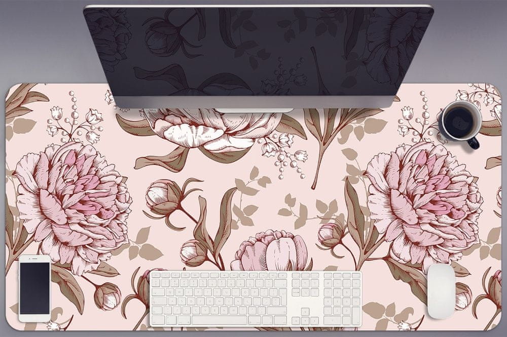 Podloga za pisalno mizo je zanimiva rešitev, ki jo lahko uspešno uporabljate na delovnem mestu. Enostavno čiščenje podloge ščiti mizo pred bežnimi mehanskimi poškodbami in prahom ali polivanjem. Takšna zaščita mize bo podaljšala njeno življenjsko dobo in preprečila tudi hitro pregrevanje prenosnika ob dolgotrajnem delu. Namizna podloga Pink peonies kot dodatek k interierju podjetja vas bo spodbudil k delu in bo lepo presenečenje ter genialno darilo za novega zaposlenega.