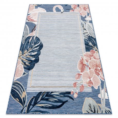 eoshop Preproga Structural BOTANIC 65240 Flamingo, listi ravno tkani za balkon, teraso - temno modra ( - Velikost: 157x220 cm)