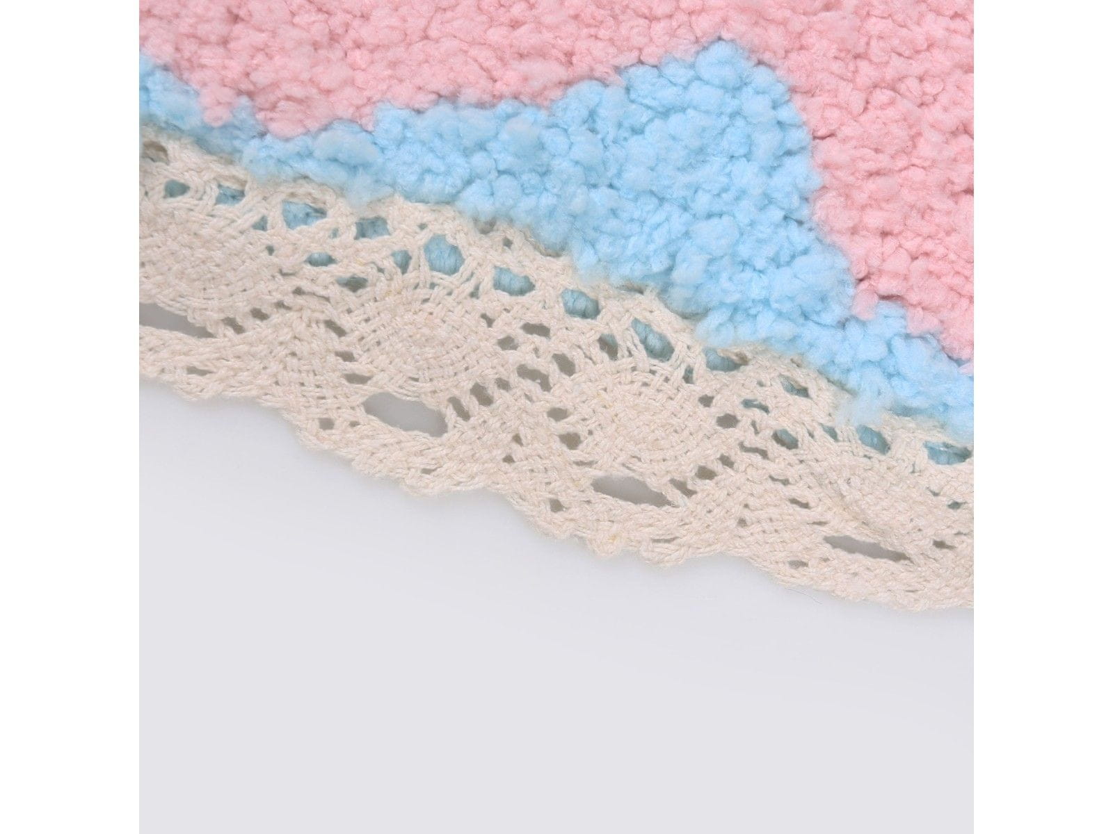 Rob preproge je okrašen z okrasno čipko, ki ji doda čar.