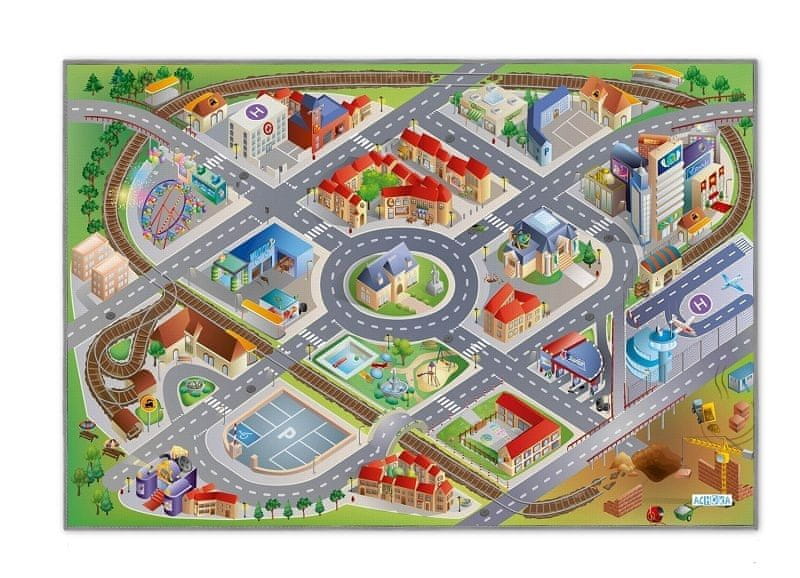 Njegova neverjetna mehkoba in nežnost sta idealna za občutljivo otroško kožo, medtem ko privlačna grafika z mestnimi motivi spodbuja otroško domišljijo. Na preprogi boste našli ceste, stavbe, prehode za pešce, parke in druge mestne elemente, ki ustvarjajo popolno okolje za igro z avtomobilčki, figuricami ali za ustvarjanje lastnih zgodb. Otroci lahko na svoji novi preprogi ustvarijo lastne pustolovščine ali preprosto počivajo po napornem dnevu. Zaradi svoje vizualne privlačnosti bo preproga tudi odličen dodatek k notranjosti prostora, ki vanj prinaša prijetno in igrivo vzdušje.