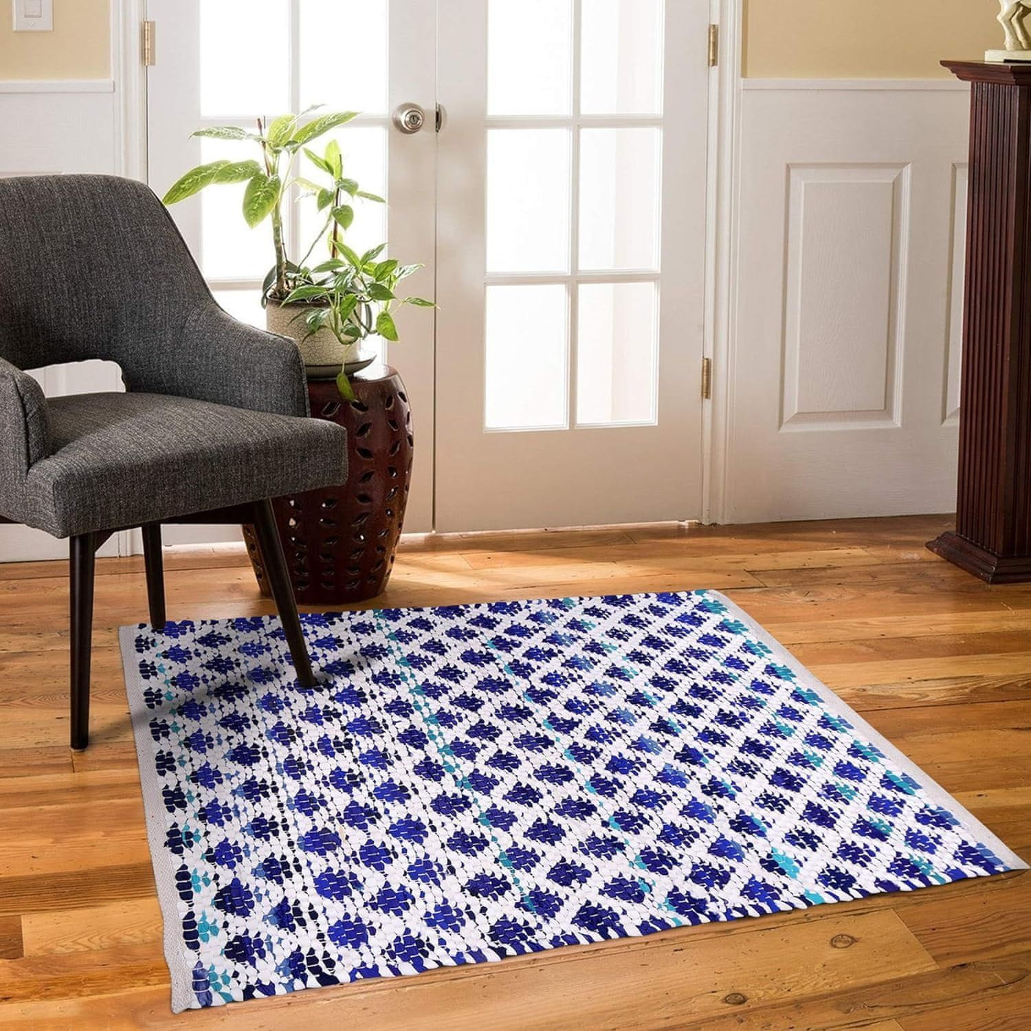 Nikcorp Ročno tkana preproga iz naravne jute 240x74 cm, belo-modra | Tekač za dnevno sobo, spalnico ali predsobo